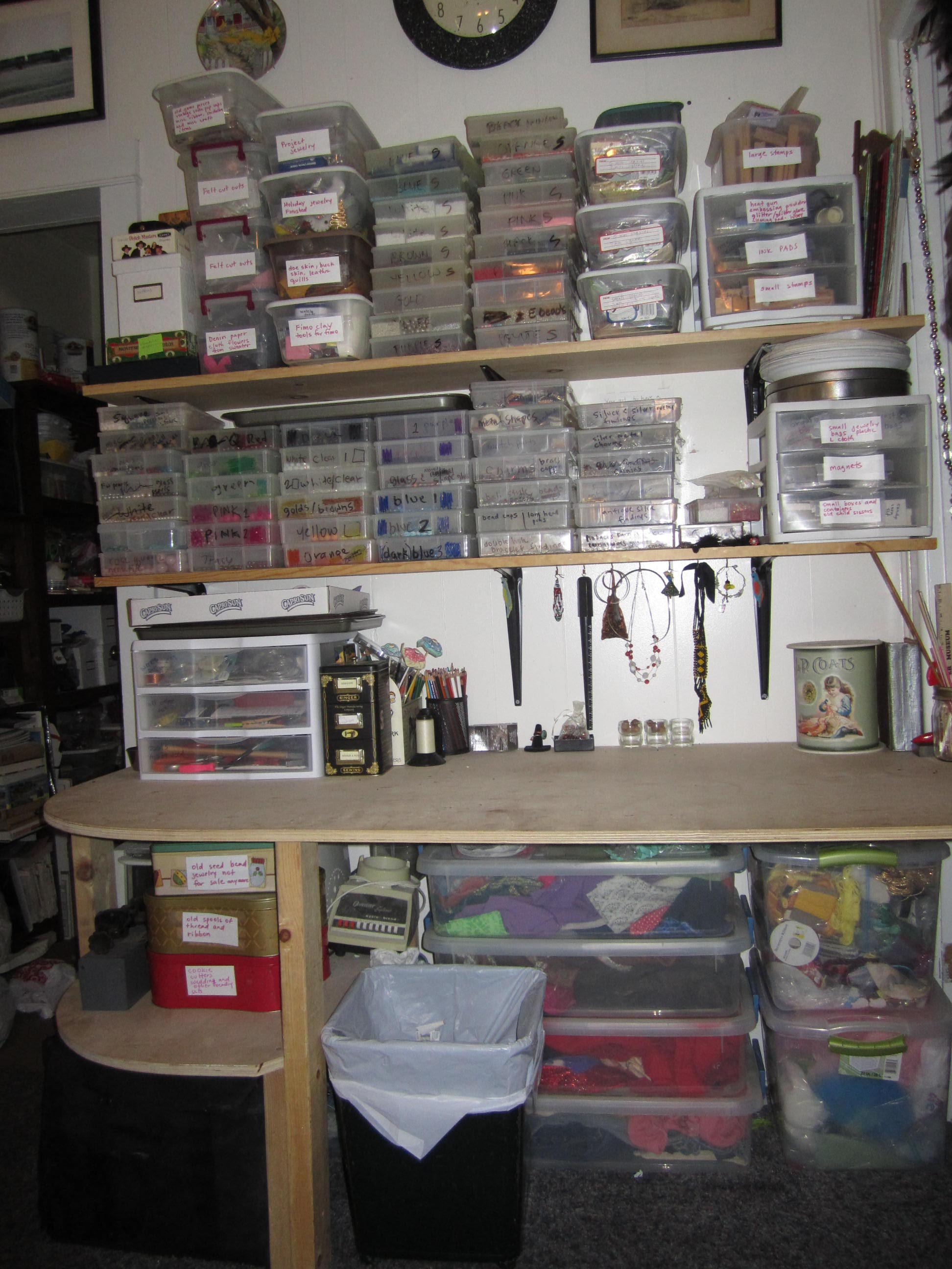 I have been working hard on it the last couple of weeks. My current studio is the corner of our bedroom as both my husbands stained glass studio and my jewelry studio were made into bedrooms while our oldest daughter and her husband and two kids moved in from out of state.