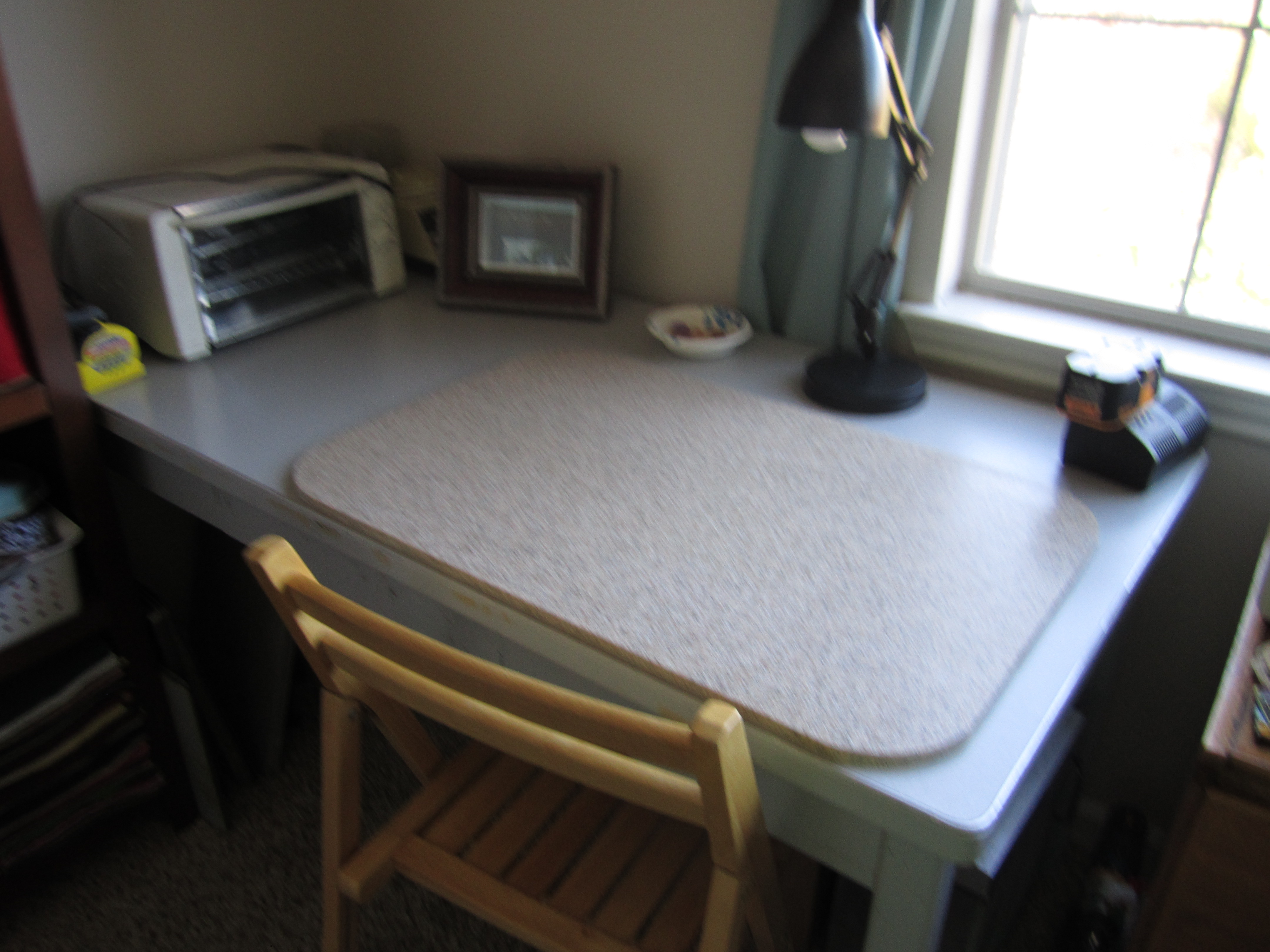 I am pleased with how it came out I brought home my corian slab from our storage at our house, and I am going to enjoy working in this space !! I did not picture this computer, but it is in the same room. Next to the work table with a wood file cabinate in between !!