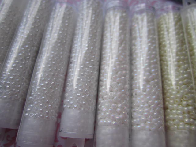 Some pretty seed beads in shades of white and off white, but one is lustered wild berry, who can resist that name !!