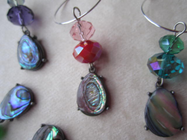I love productive days when I get a lot done and can look back on my day and see actual things I have made to show for my day. Today was a day like that. I made a dozen and a half wine charms, four guitar pick necklaces, one regular necklace, and four pair of earrings. Whew. I listed a lot of it too !! I will share what I can, twelve of the wine charms and the four quitar picks did not get thier pictures taken today, but the others did for listing !!