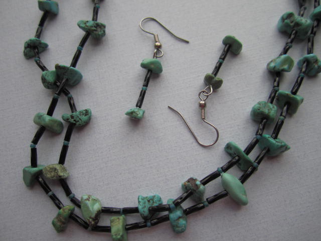 I also made a pretty necklace and earrings set with turquoise chunks , seed beads and bugle beads ! Loved how it came out. I made sets like these over twenty years ago that our youngest daughter is wearing today !! Actually that is what made me think to make more, she was wearing one of them last time I saw her. Not soo shabby. They are around 20 years old and still look great !!