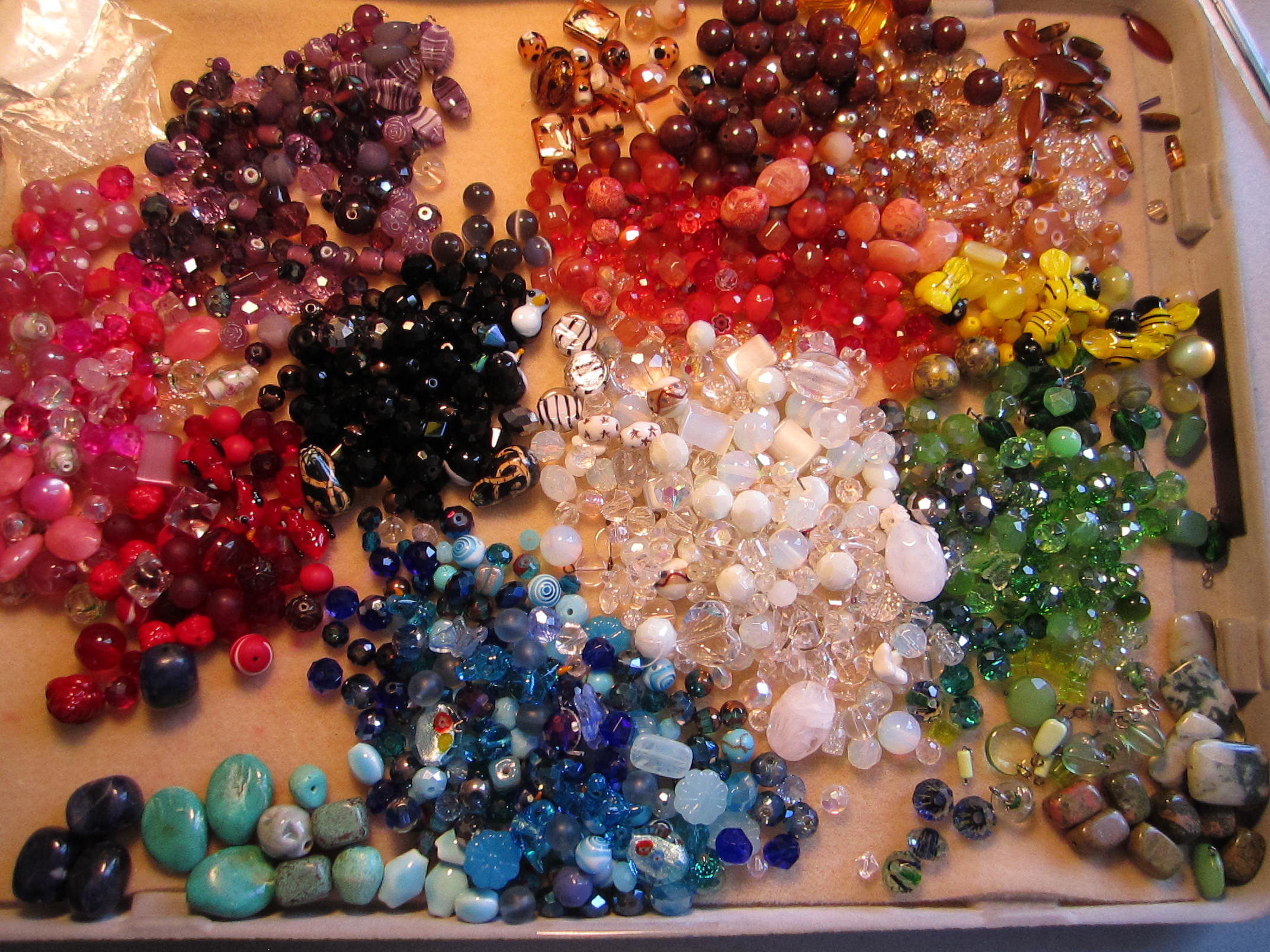 So many pretties !! The boxes are still very full, except sad to say red. My red box is all but empty, what is in the tray is the majority of what I have in red. I will have to see when the bead markets are coming to town, red has to be replenished !!