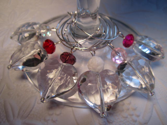 ths first set is so pretty. They are heavy faceted glass heart beads. So pretty, they look like something from a chandelier, but I got them at the bead market, and love them !!