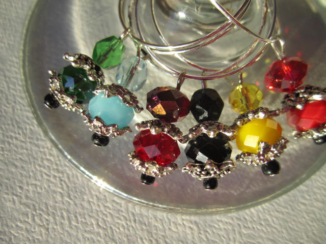 Since I have about a week until my first review, I want to get a lot of wine charms listed in case I get some traffic. I am going to make more just like the ones I sent Ruthie, she really liked them and I thought they were cute too, these are the ones I sent her, so I will pick up more beads and make a few more sets just like them !!