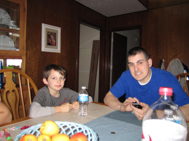 Why do I ask him to smile ? he is more ornery at 32 than he was at 16 !! Our son and his oldest child and our oldest grandson !!