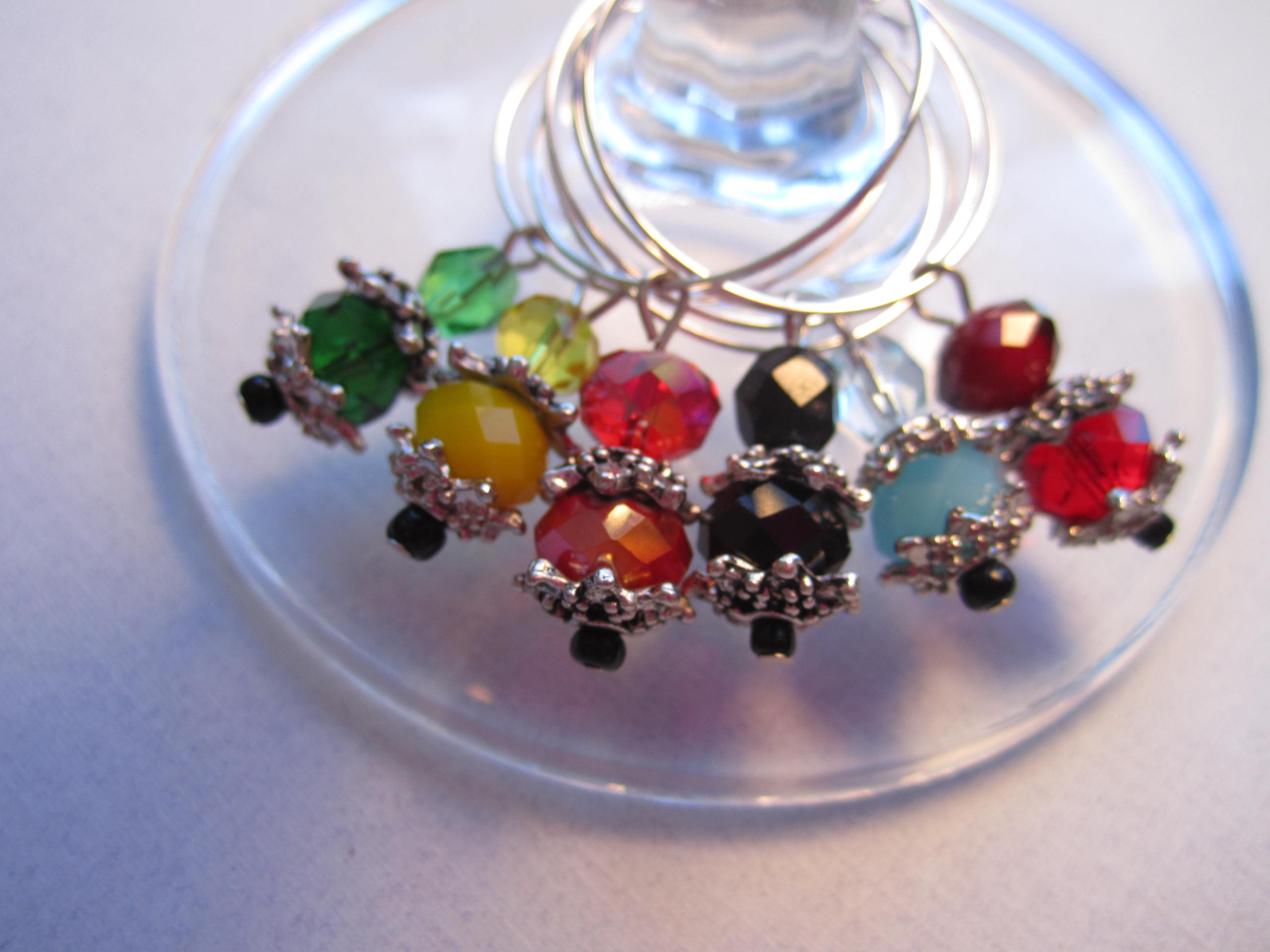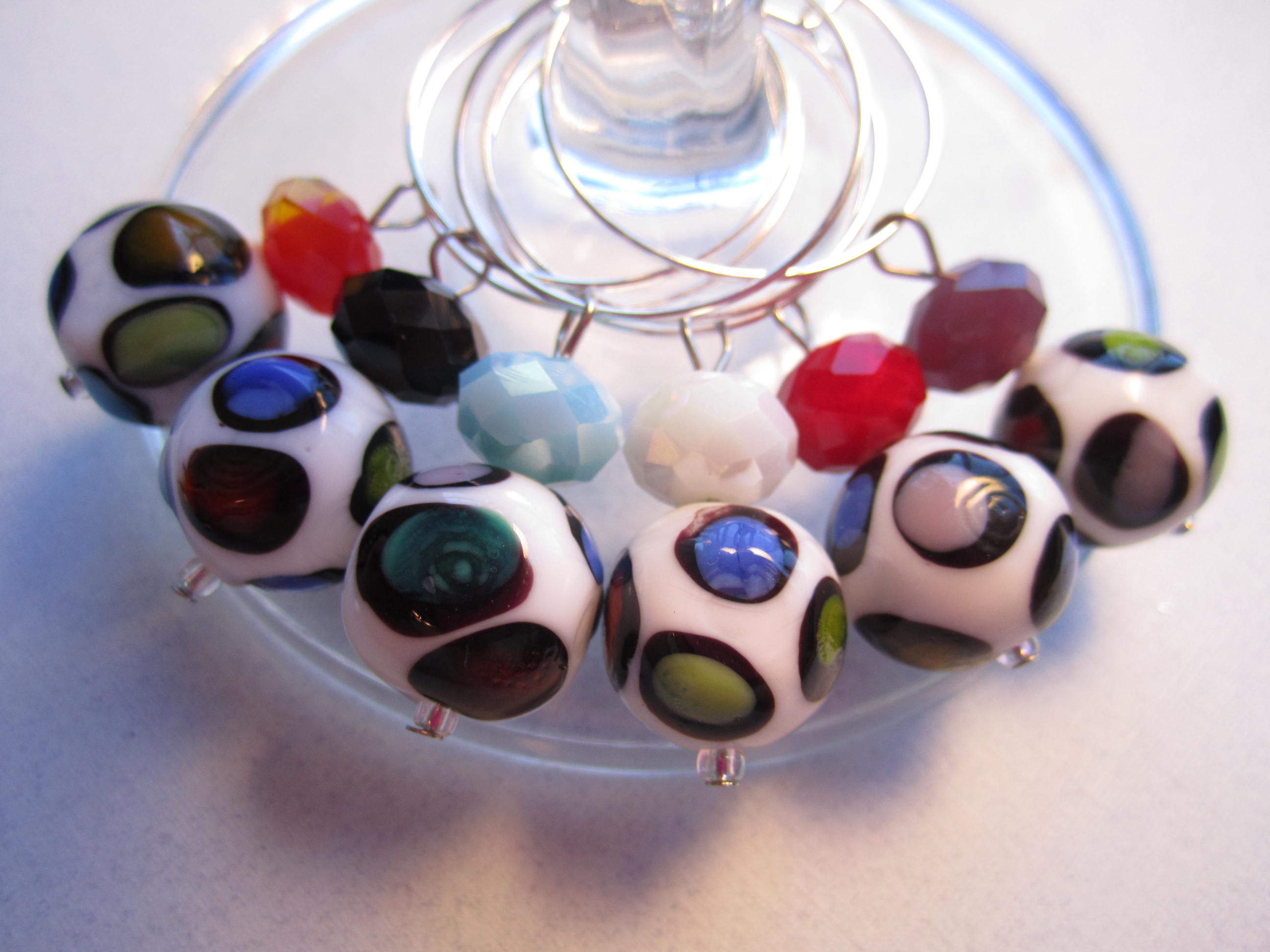Whew, I have gotten a lot done today !! I made up a bunch of wine charms and finally photographed the ones I had already made. I got my charm section in my Etsy store up to 24 sets of wine charms. I have 12 more sets to list and a bunch more to make.