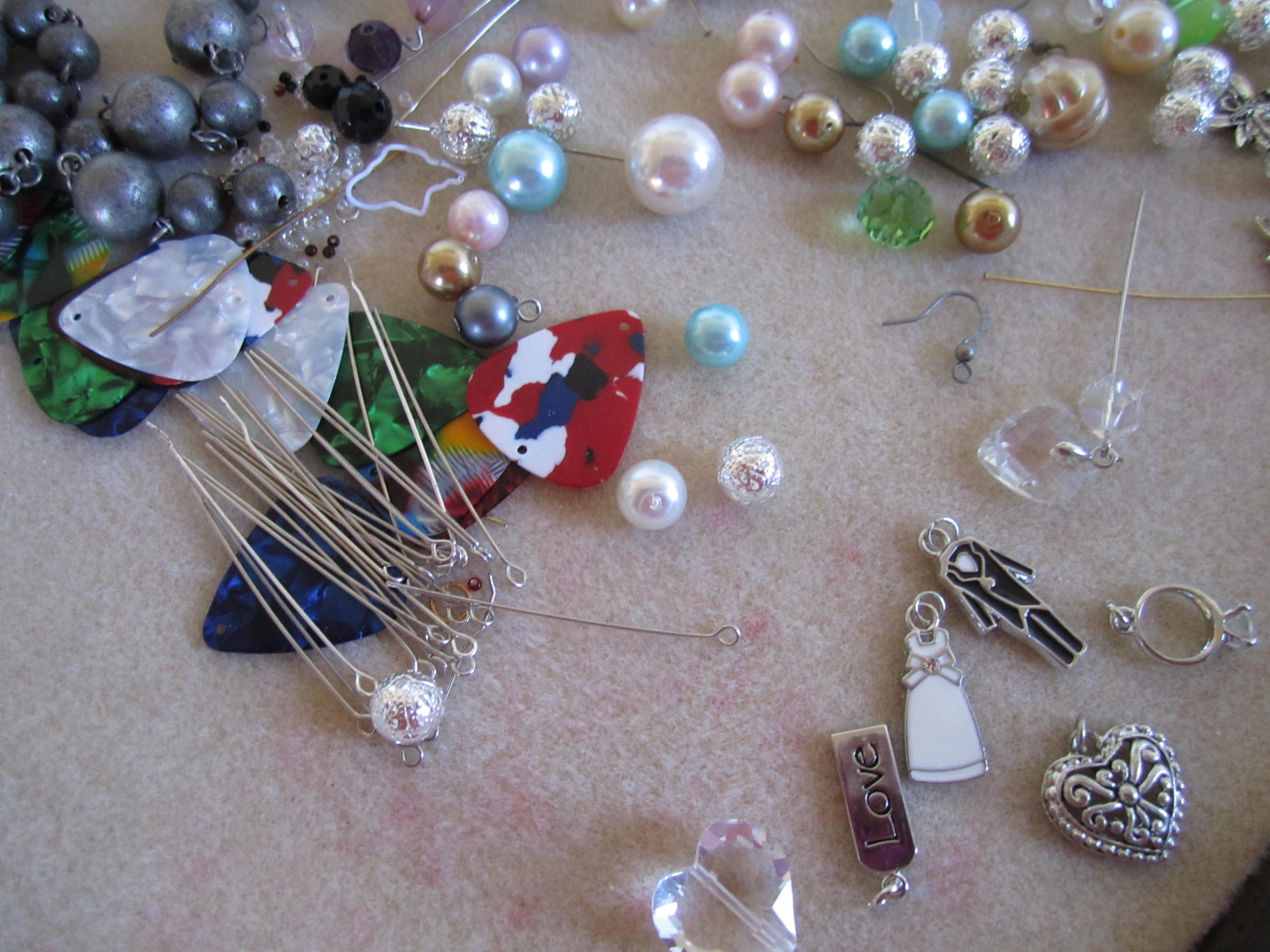 some of the guitar picks are there too, those are what our 12 year old grand daughter and I play with. She gets orders from her friends and we make the pick necklaces up. I only charge my materials, we have a good time playing with them !!