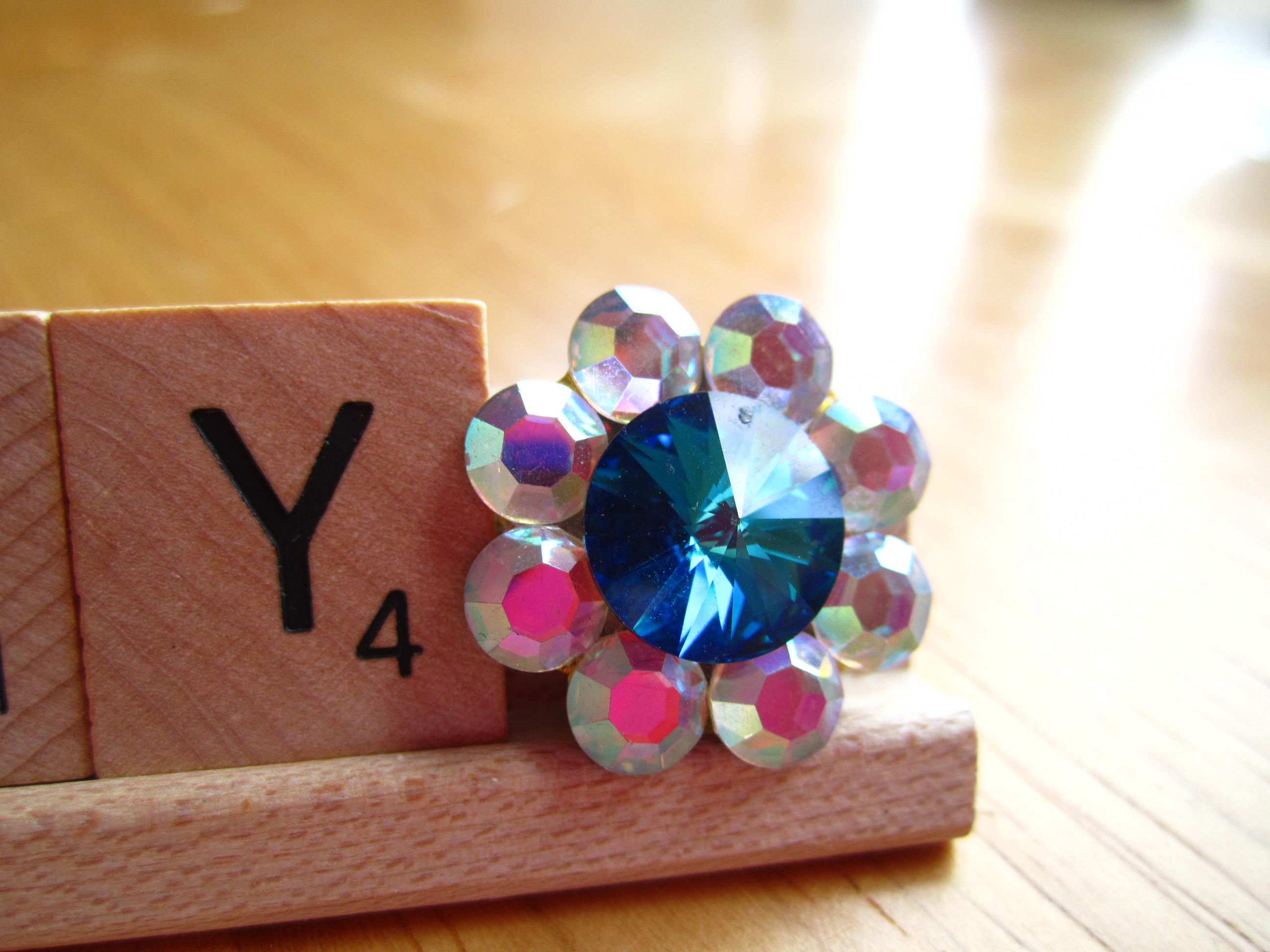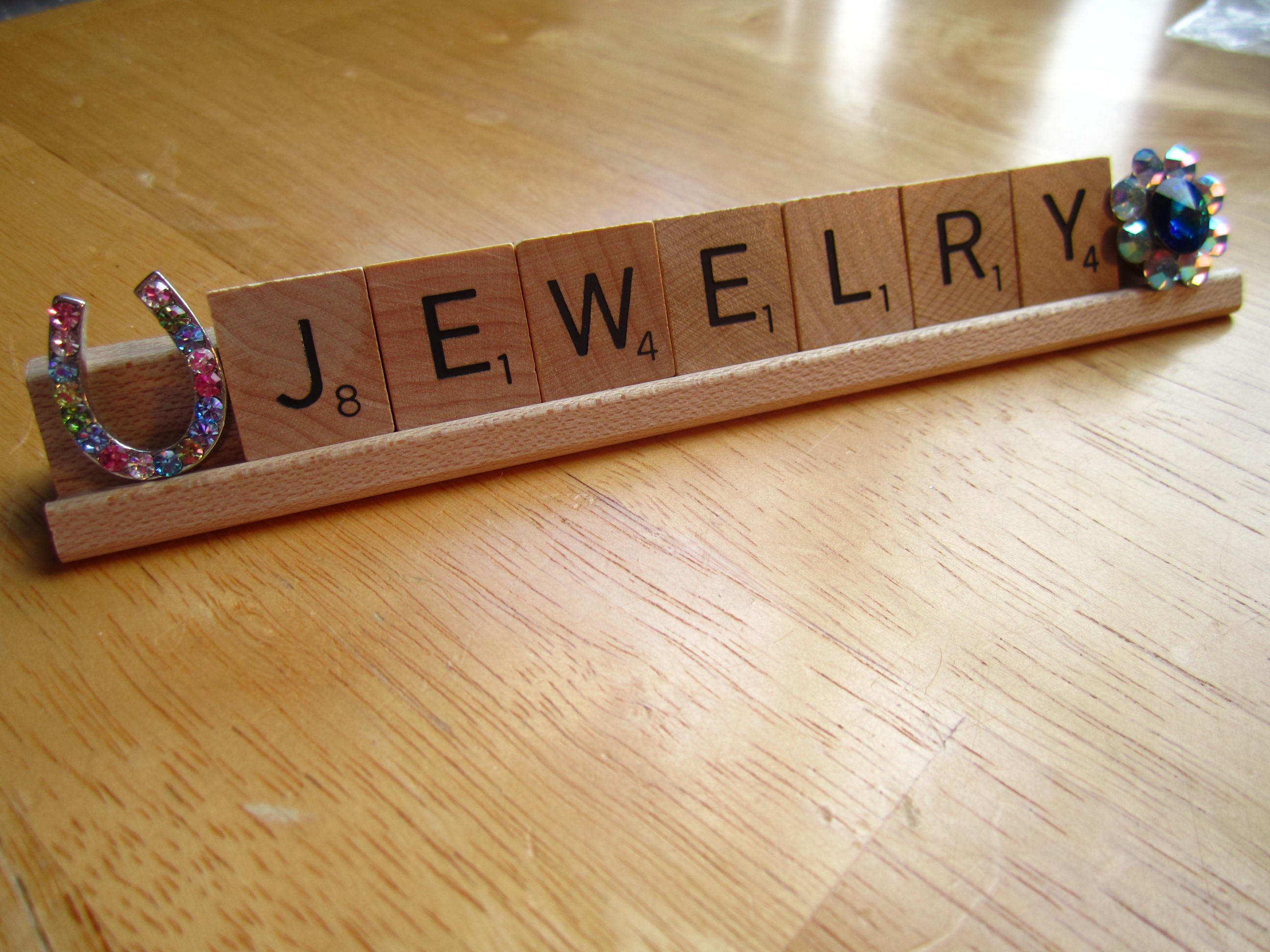played a bit in the studio before I faced the mess !! Old pieces of jewelry and the letters glued with clear tacky glue onto one of the scrabble stands !