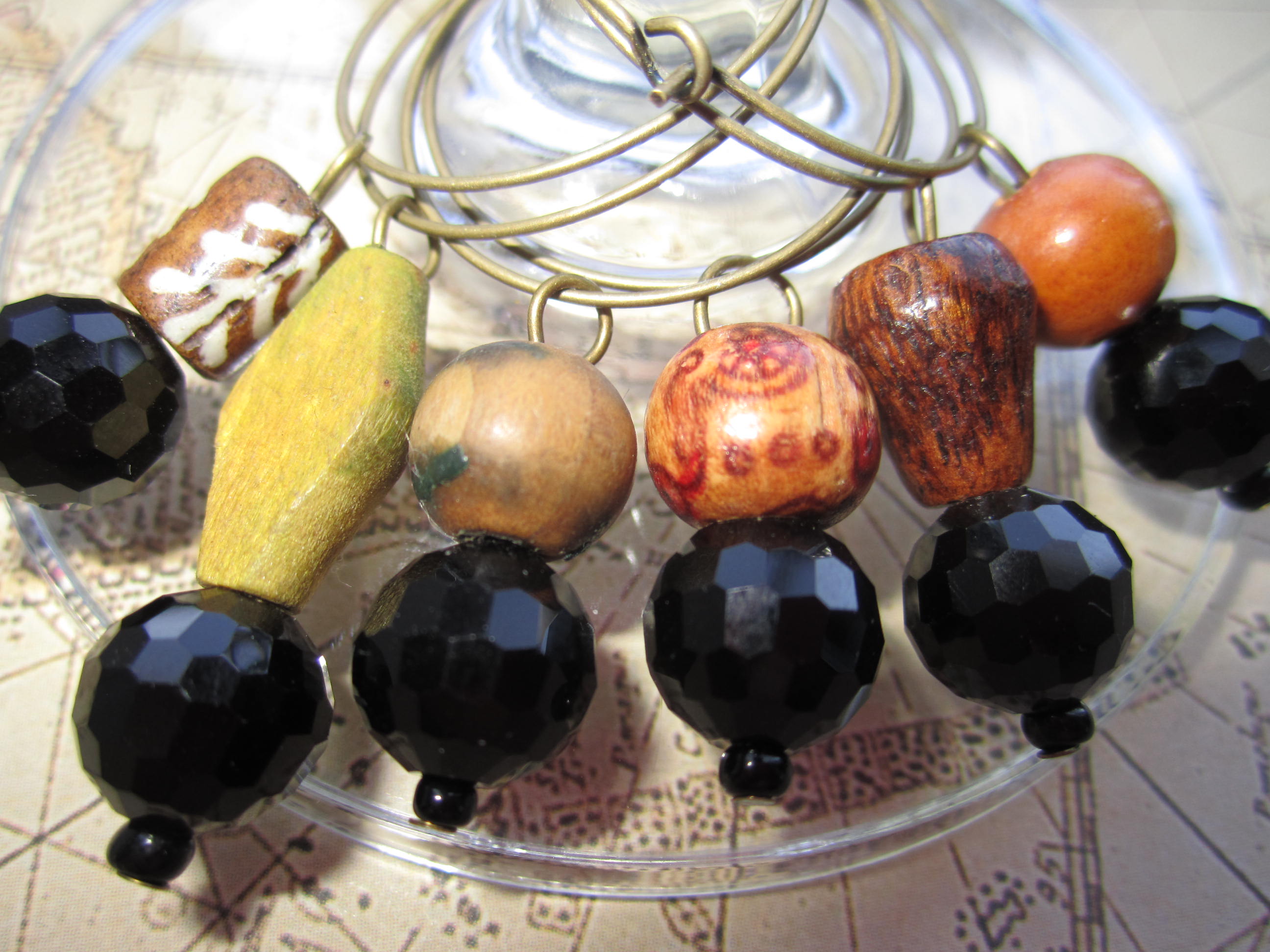 had to add in some glass, so here is some black glass faceted beads with differant wood beads.
