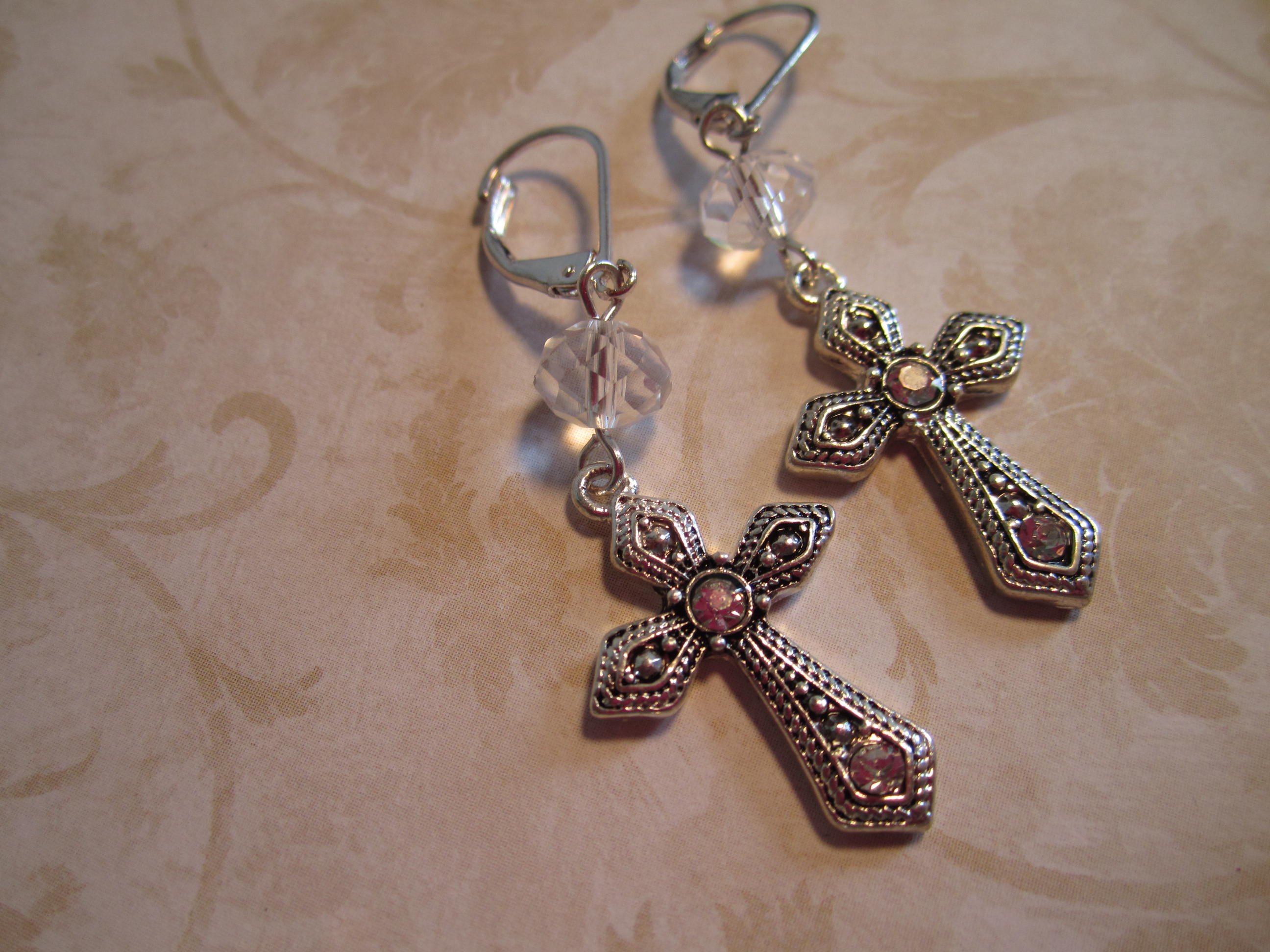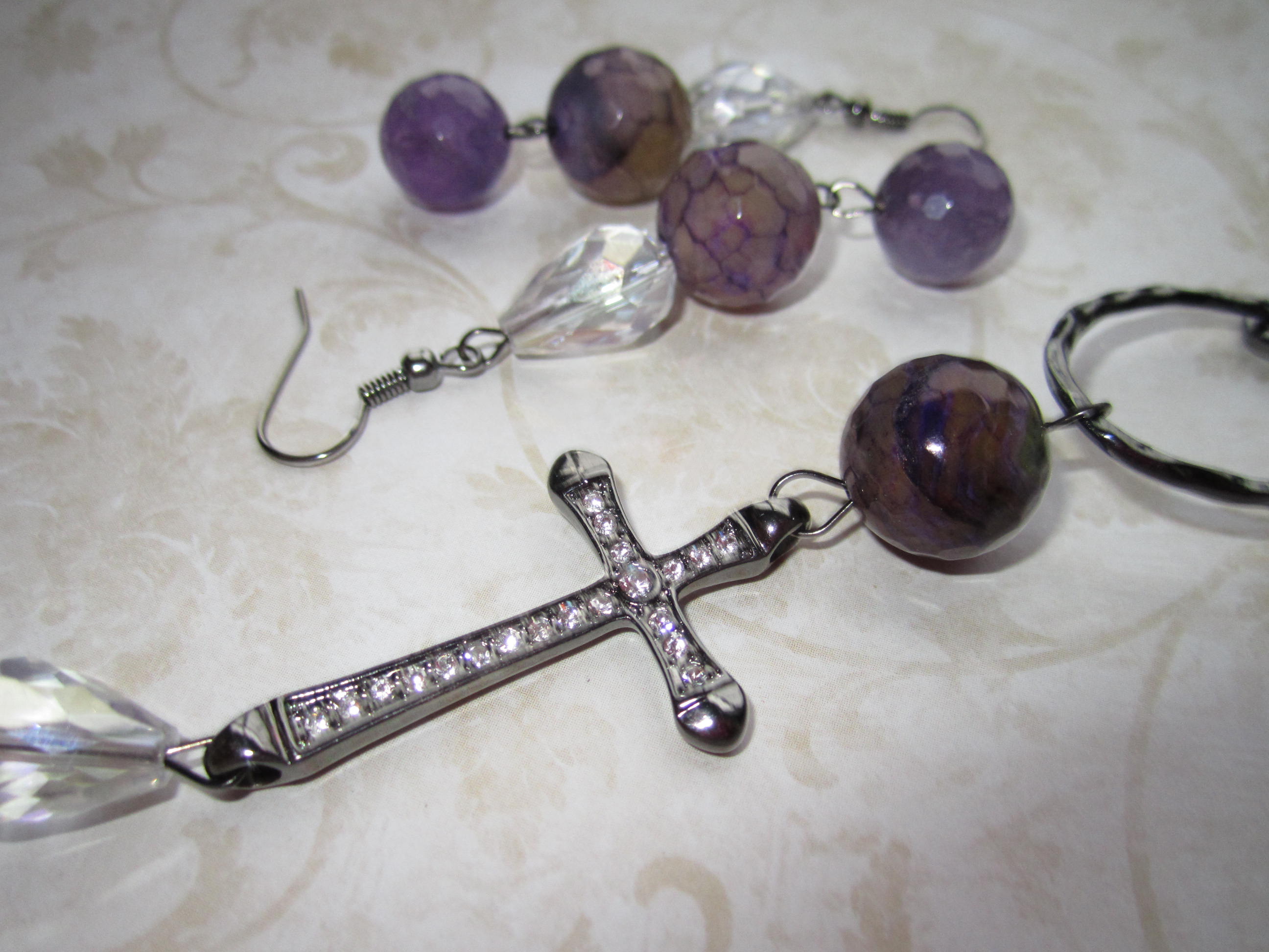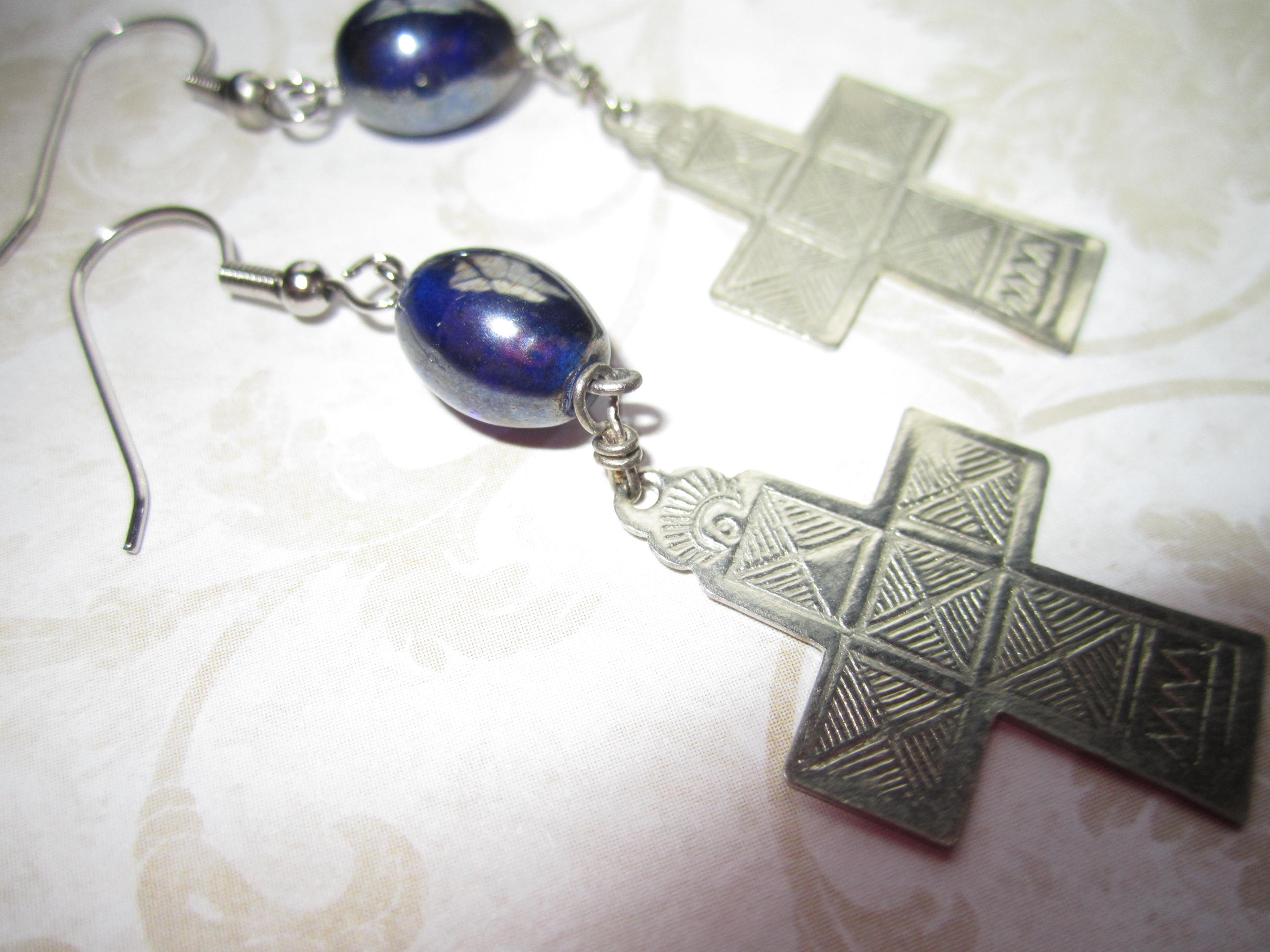 Below are some pretty earrings made from the huge necklace I bought, there are like 25 crosses with the blue beads on it, and then all the other elements of the necklace are so pretty !!