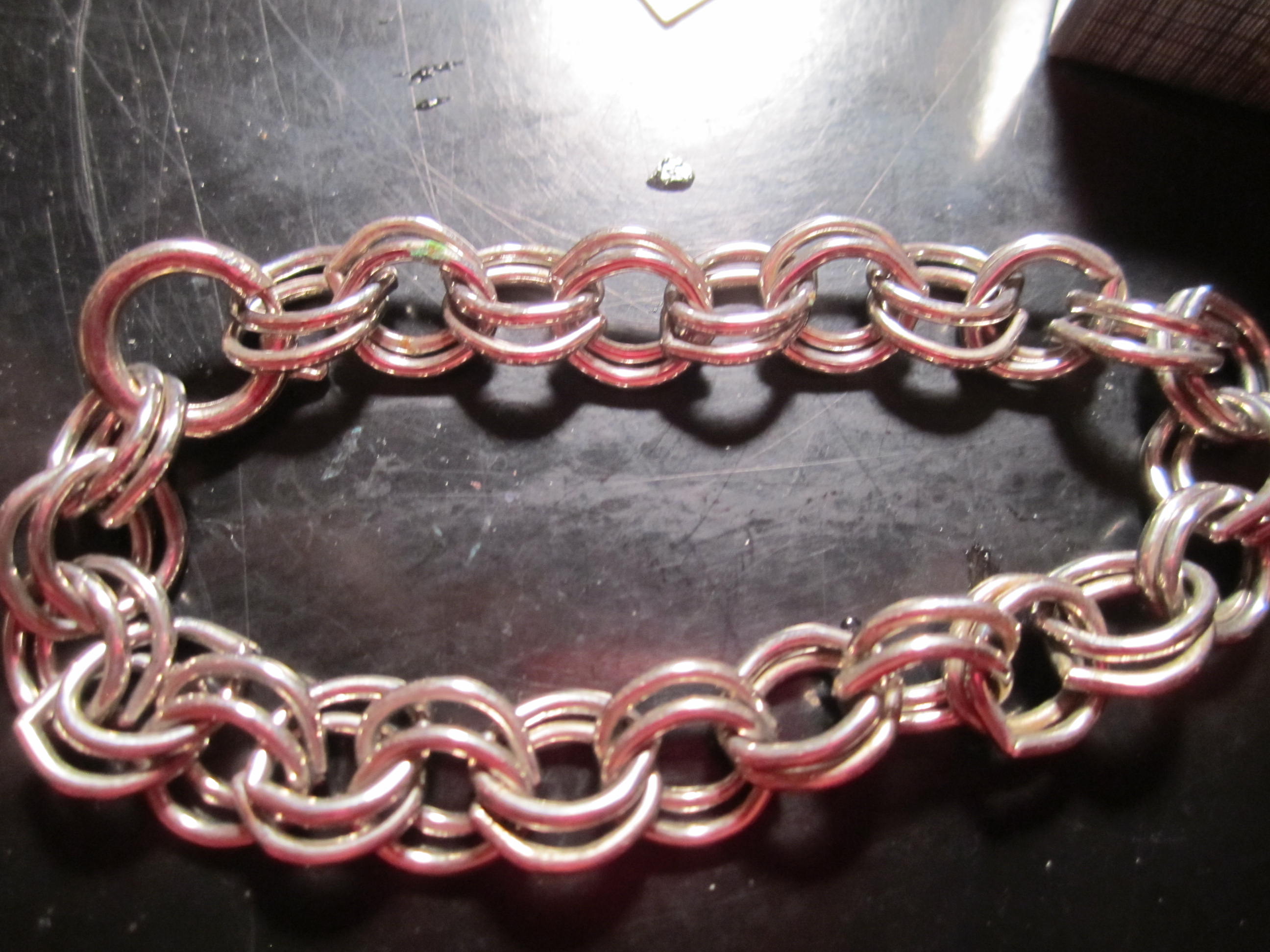 here is the chain, I will make another nice braclet out of it after changing the clasp and adding an extension on the other side. It is a bit short.