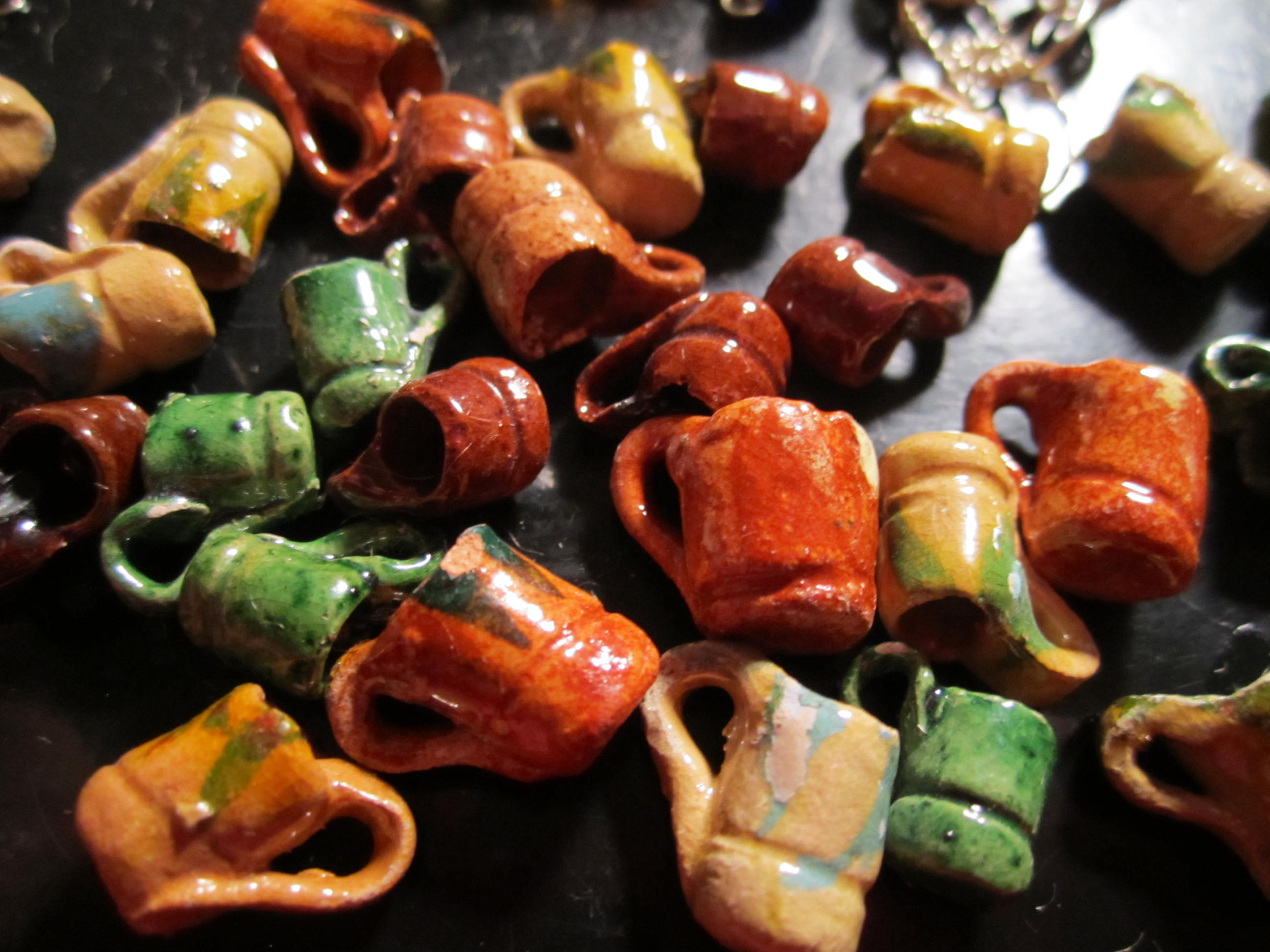 a really ugly hair clip , cut apart and it is a bunch of cute ceramic , tiny , tiny cups, and some stone beads. Cute little cups, but ugly barrette !!