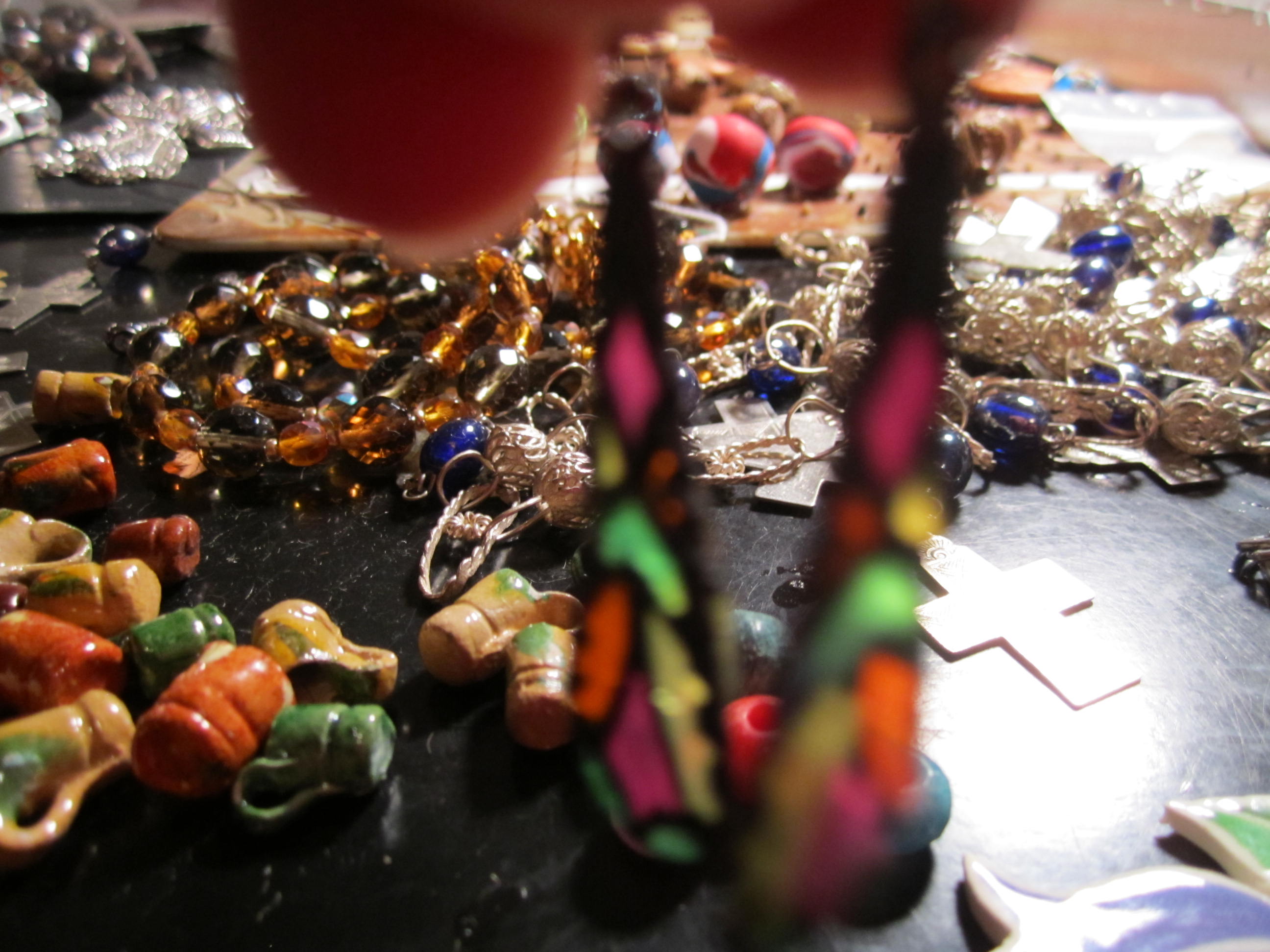 Then as an added bonus to my day, David set up the drill press and did these things for me. We were experimenting, seeing what we could drill holes through , lol !! I have a bunch of each item to do, but we stopped for the night, but we will be making some more unusual beads out of non bead things !!