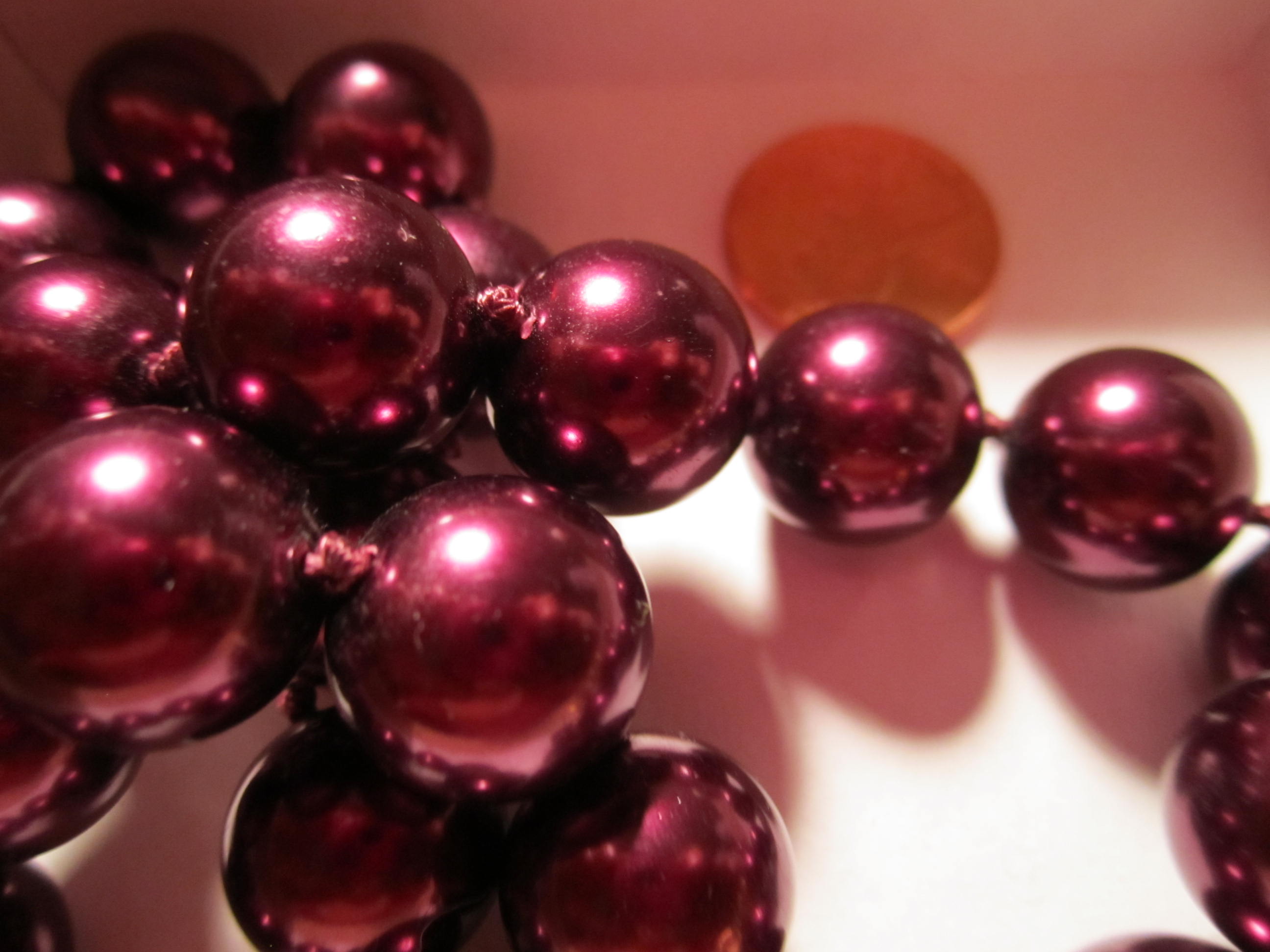 these pearls are the most stunning color and good sized. Put a penny next to show. Picture does not even do it any justice, they are heavy weight, mint condition and the string they are tied on is the same color as the pearls , hand knotted in between, nice quality but I will be cutting them apart, lol !!