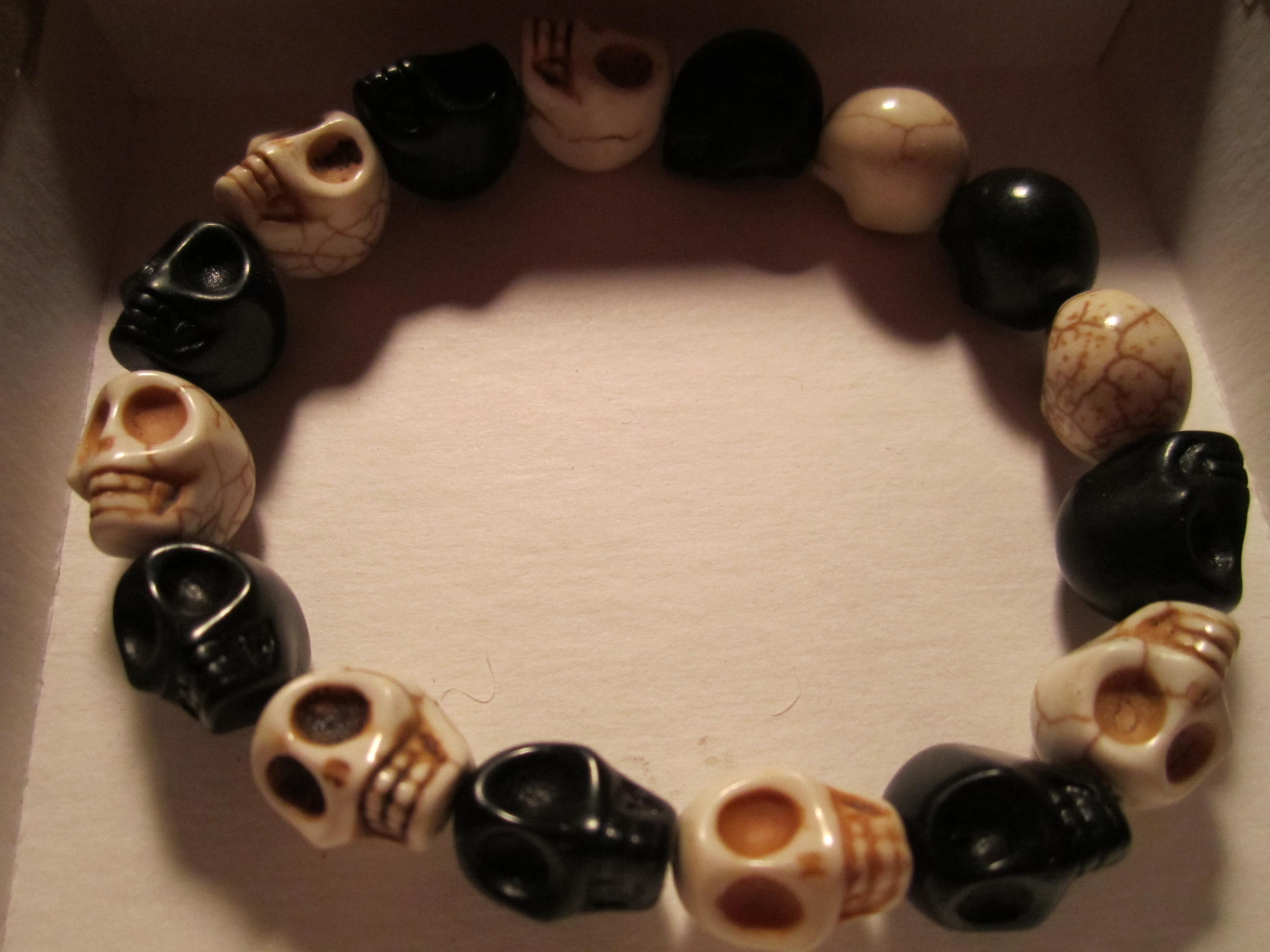 These are some beads I got with my pay pal money I had saved from an order, the skull bracelet was free , but I got two sets of increditble beads so cheap,