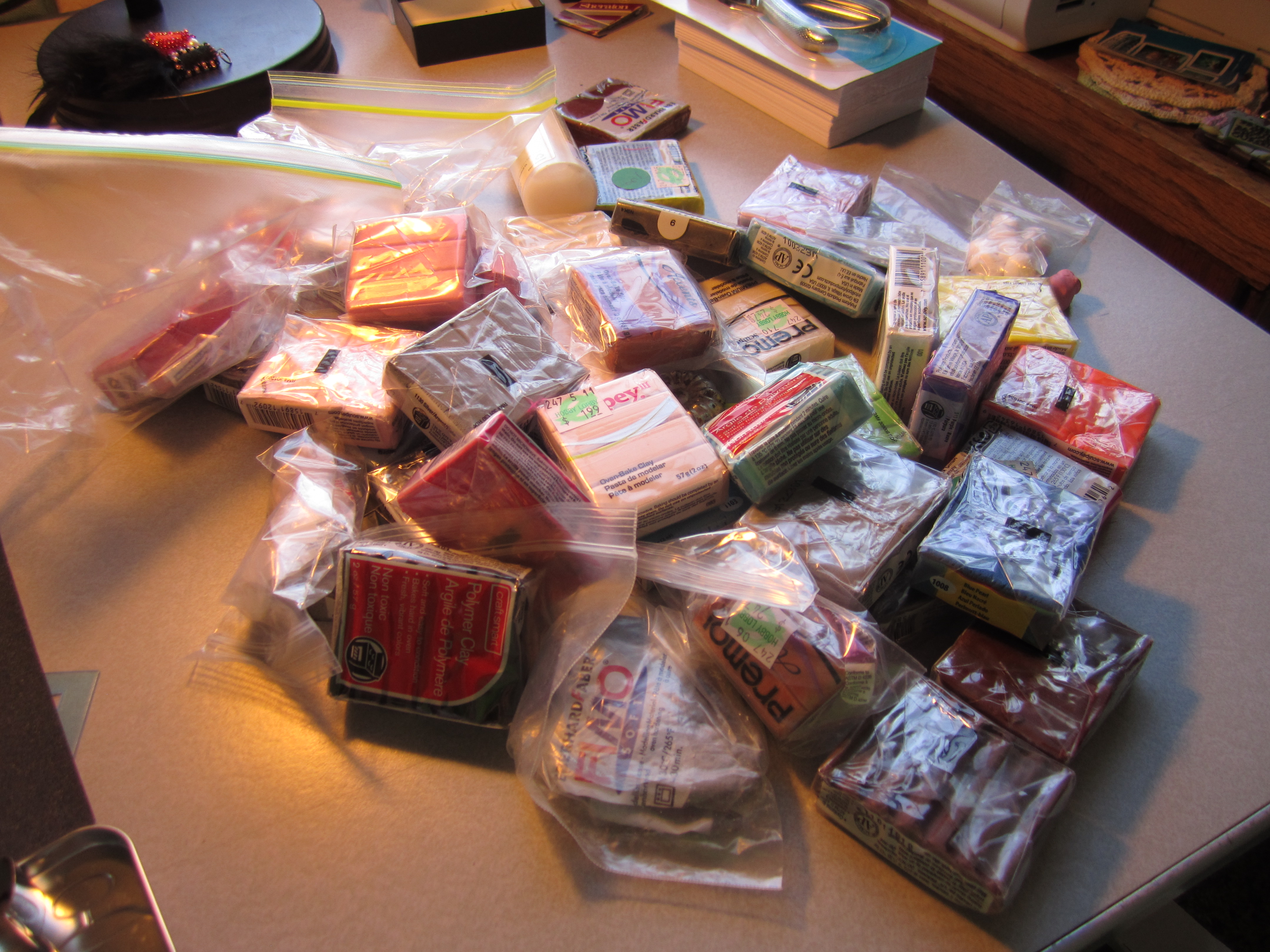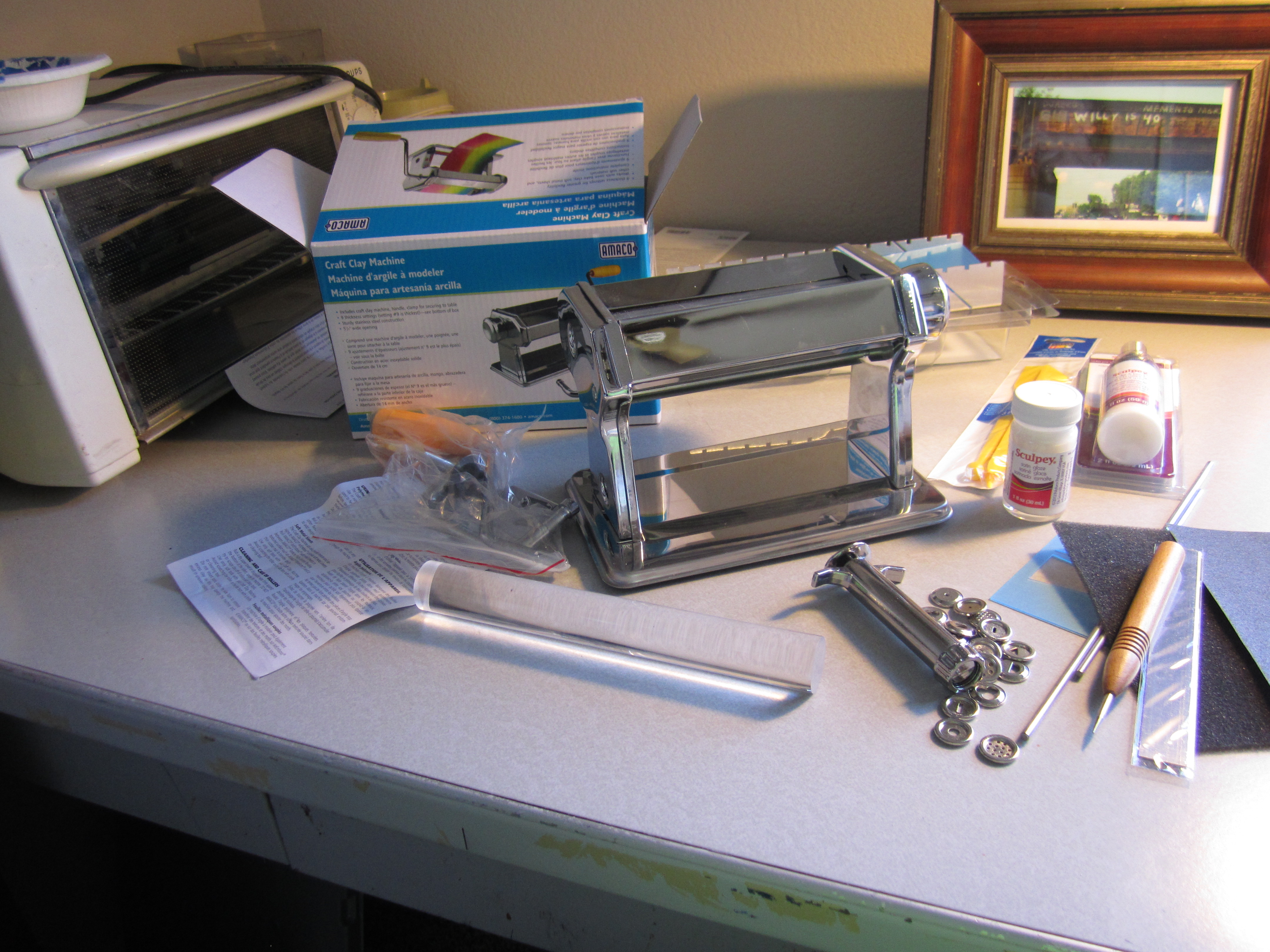 I have a full shoe box of polylmer clay. A. SHOE. BOX . FULL . A plastic shoe box of all kinds of colors , another one of tools and cutters and rollers. I have a spagetti roller thing for clay, and I have a bead rack to hang beads on in the oven. But do I make anything out of the clay, that would be a big NO !!