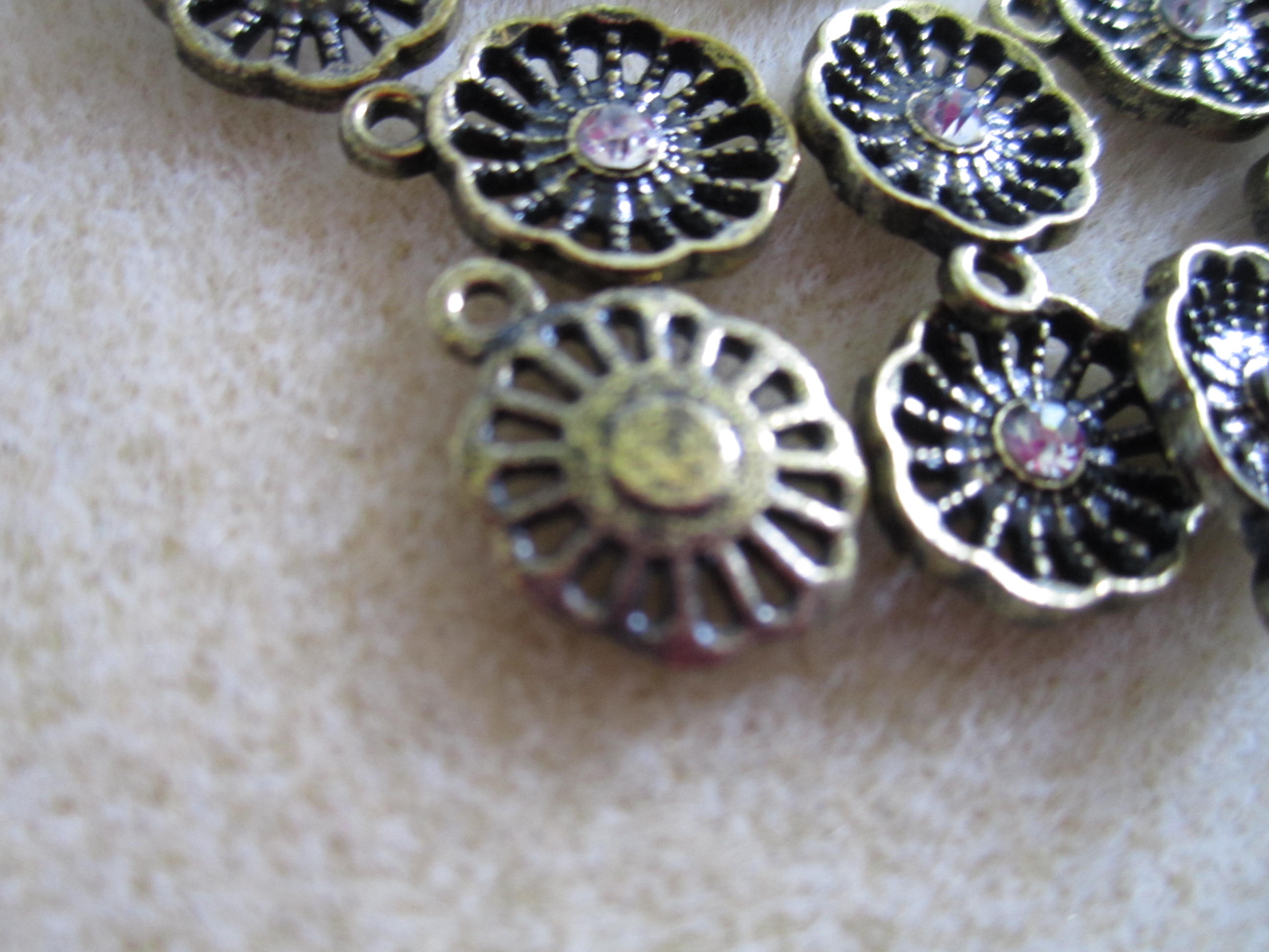 I forgot to take a picture of the pieces, but I took all the pretty discs with the crystals off, and replaced them with these beads,