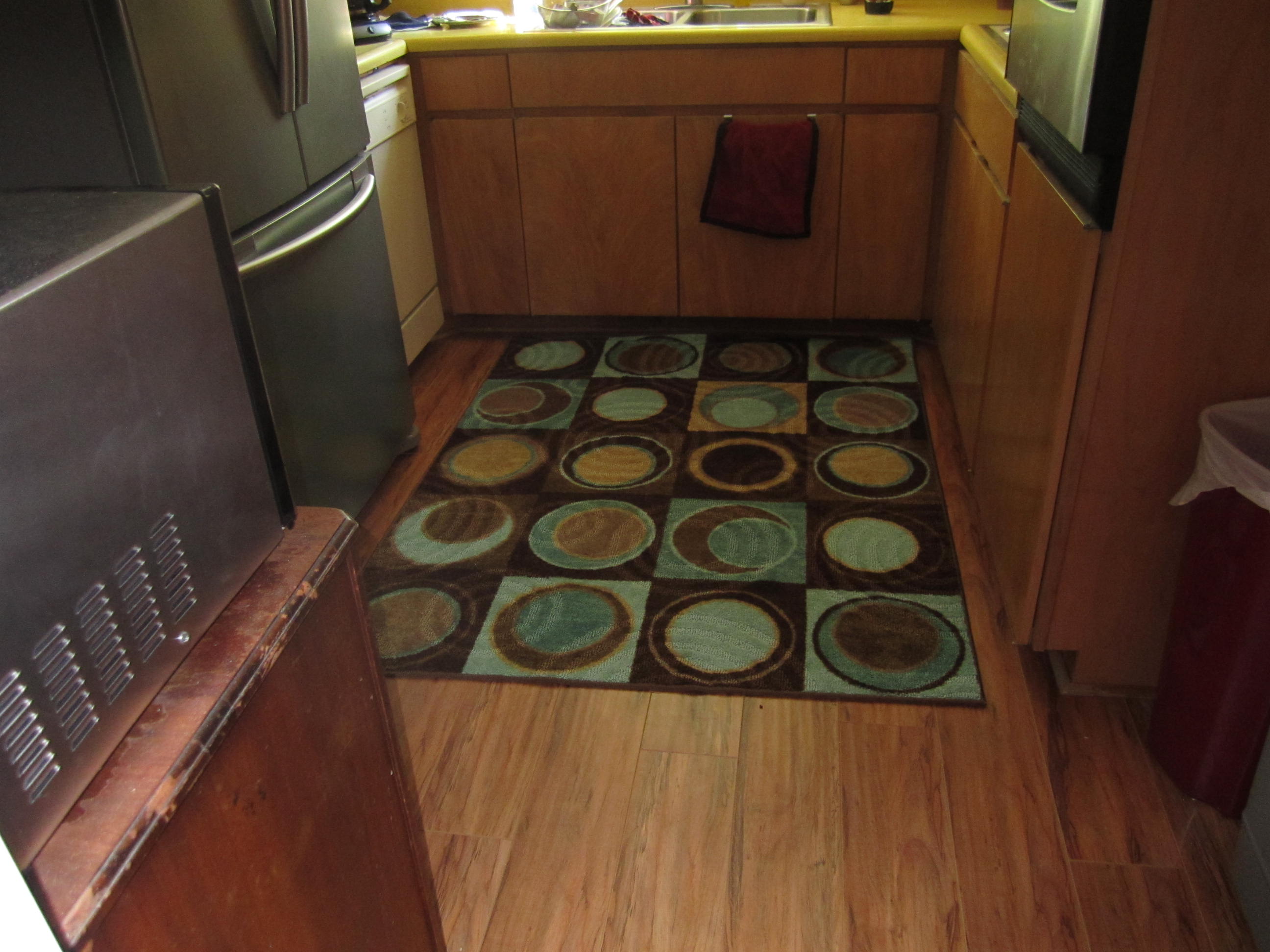 new rug for kitchen, you can see how small it is !!! It is in very nice shape though. Remodel is planned for the future, but until then, we will embrace our small vintage kitchen !!