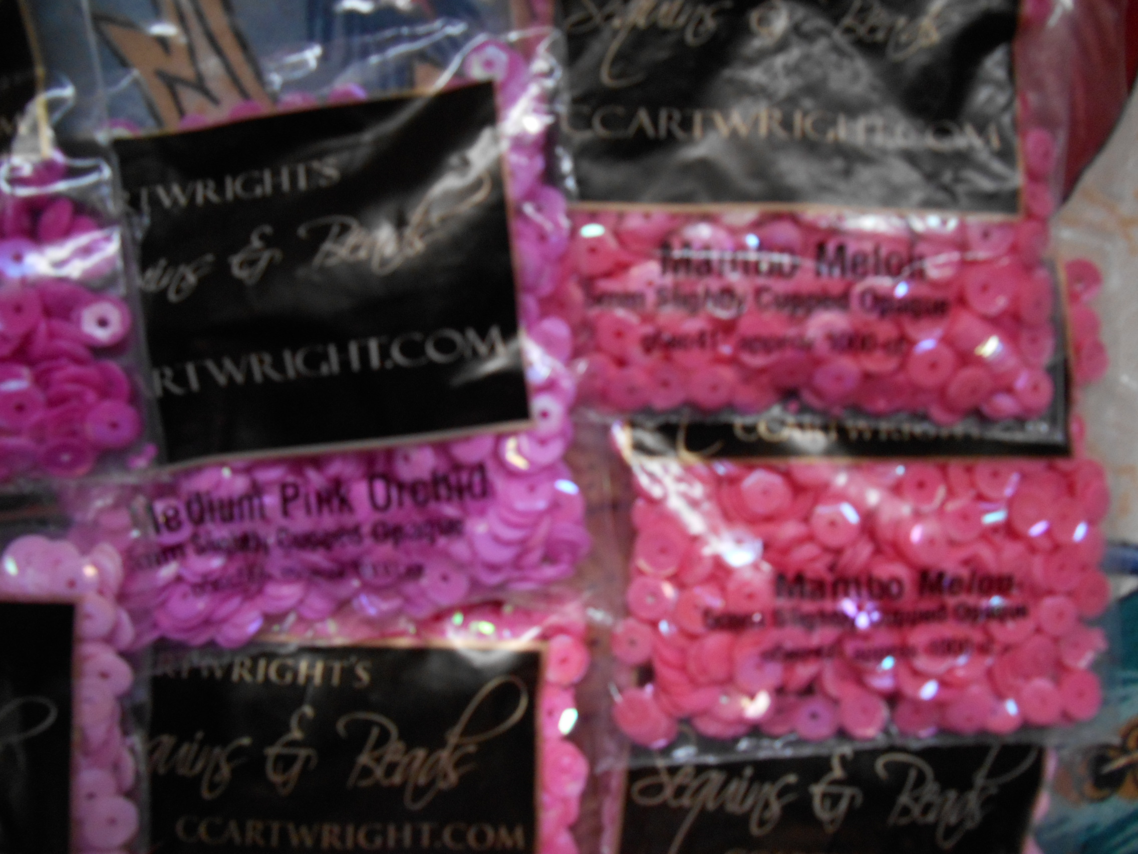 I ordered more sequins because some I loved were being discontinued and some I had never bought were being discontinued and then once shopping , bought some that were not discontinued but I did not have. I am so grateful to be addicted to somethign that costs 1.25 to 1.50 a bag. This is for 800 to 1000 pieces per bag, most of the time !!