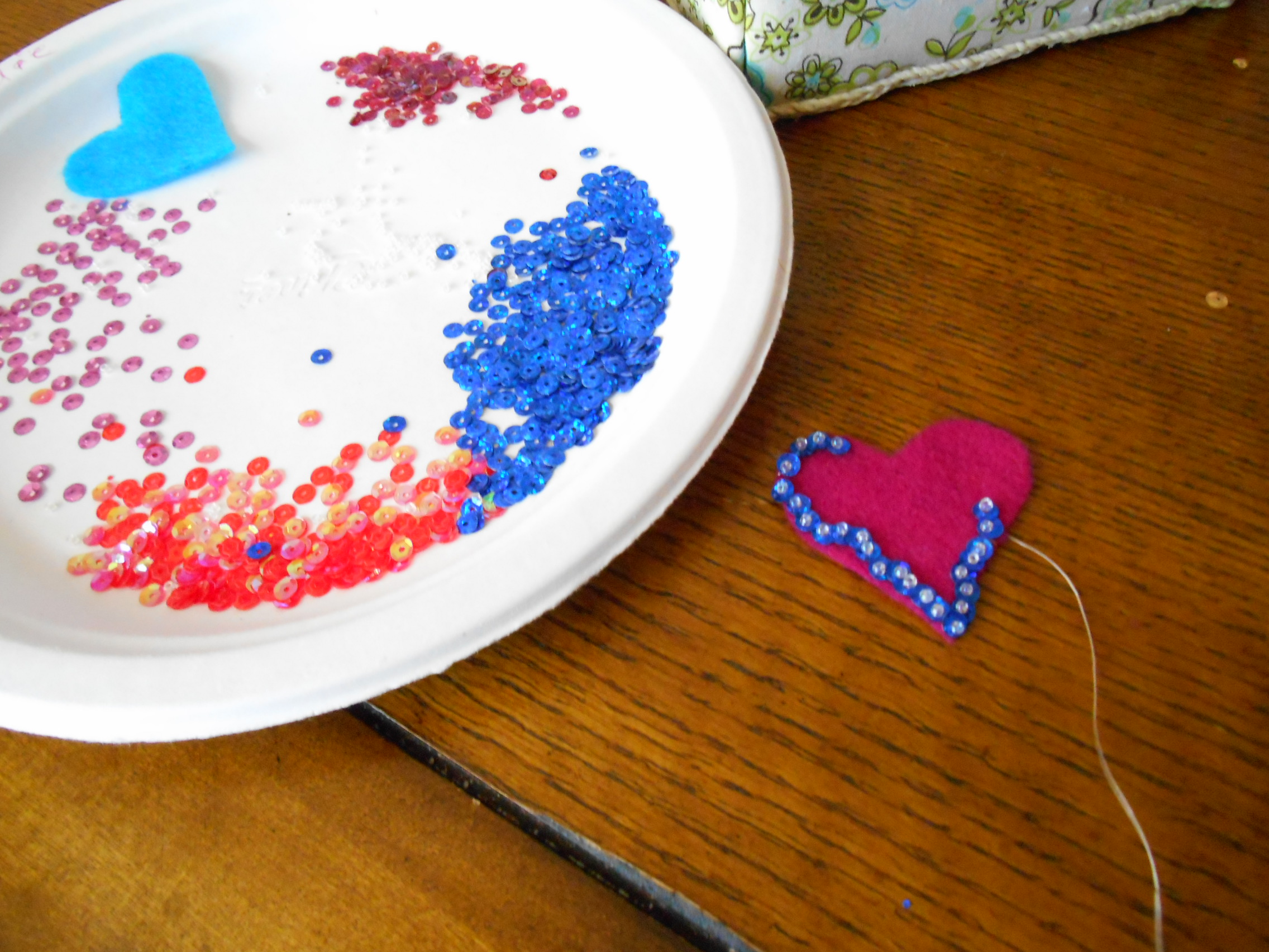 I started her younger sister, five years old with a simple piece, a heart, luckily that is what she chose or I would have had to steer her to it, and then she picked out all her colors and decided the blue would be the back !!
