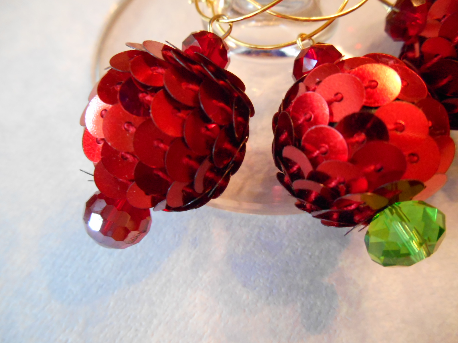 They are so fun !! The bright red of a tradtional sequin, the camera did not really catch that bright pretty Christmas red that sequins are, and combined with the bright faceted glass beads, they are just stunning and so sparkly and festive !! Perfect for a holiday table.