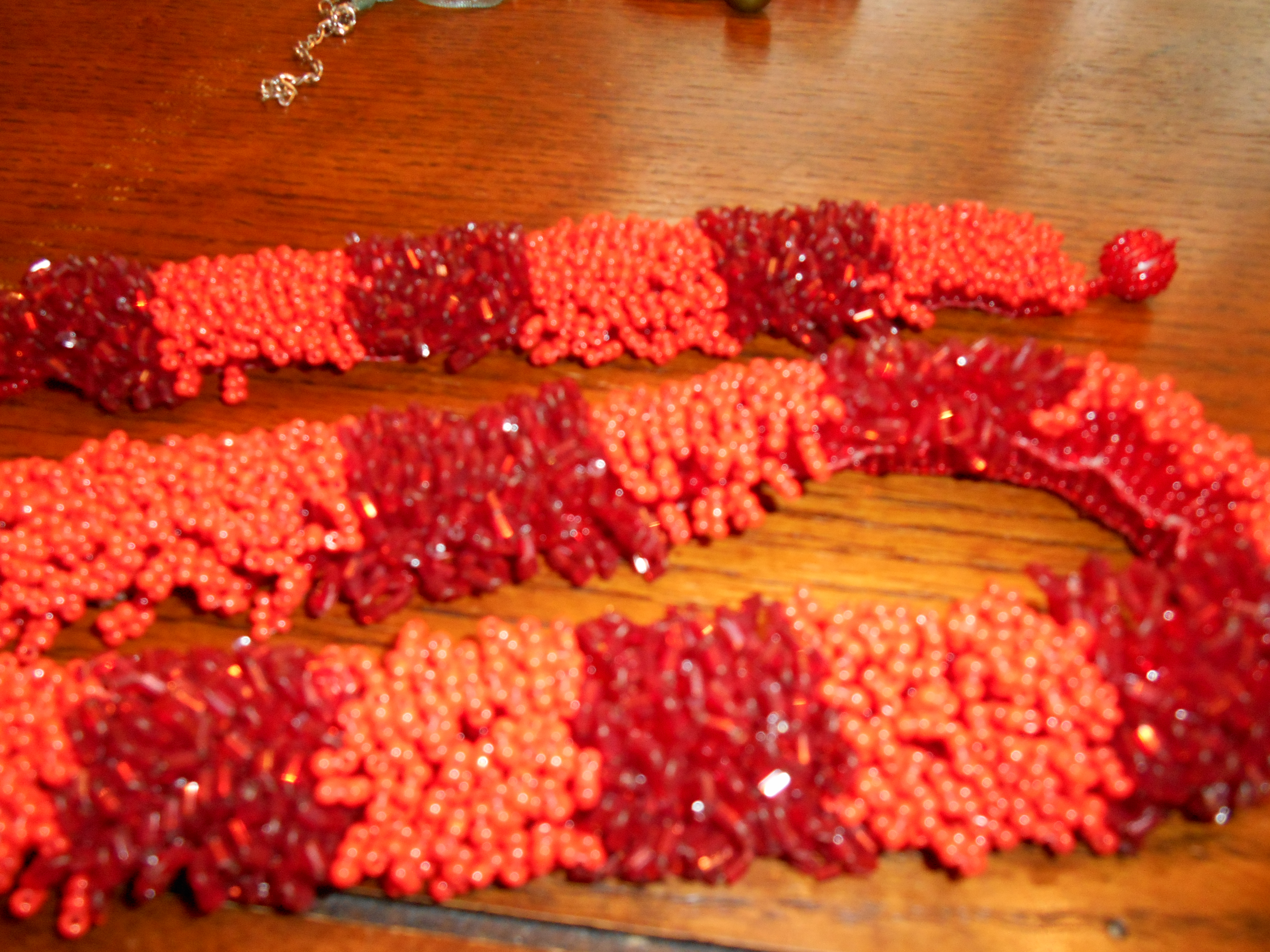 A nice selection of goodies that set me back a grand total of Β 12.50 for all , not counting the dress, which was an additional ten bucks, and the gorgeous beaded necklace and bracelet are worth much more than that all by themselves !!