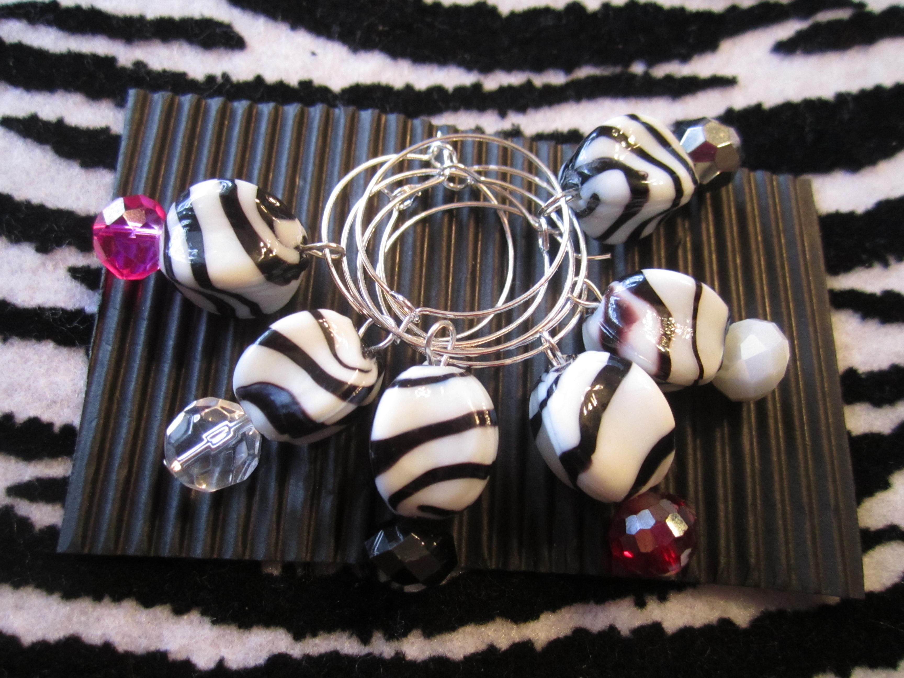 simple glass zebra beads with fun twisted , faceted beads in fun colors including purple , red and hot pink and some traditional black , clear and white !!