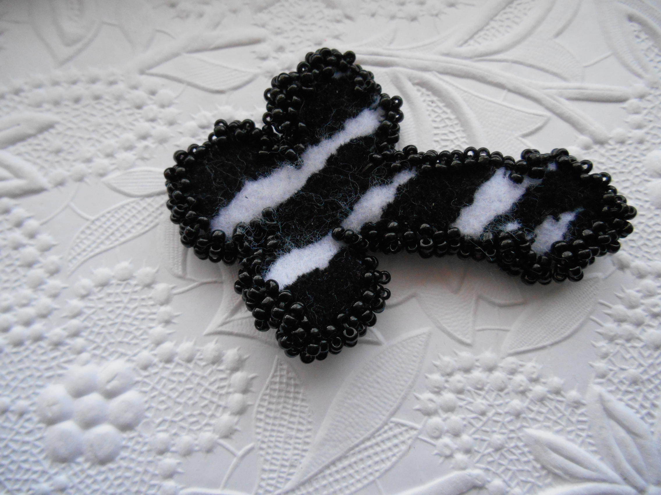 I took some vintage felt, white with tiny gold spots and cut them into hearts and squares, and some pretty textured zebra felt and cut it into crosses. I was so intent on what I was doing, I forgot to take pictures until the last one, which was the cross.