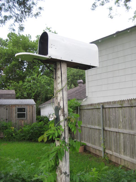 we plan to eventually paint this mail box , but the birds do use it !!! The whisperia on it has passed on, but we will replace it !!