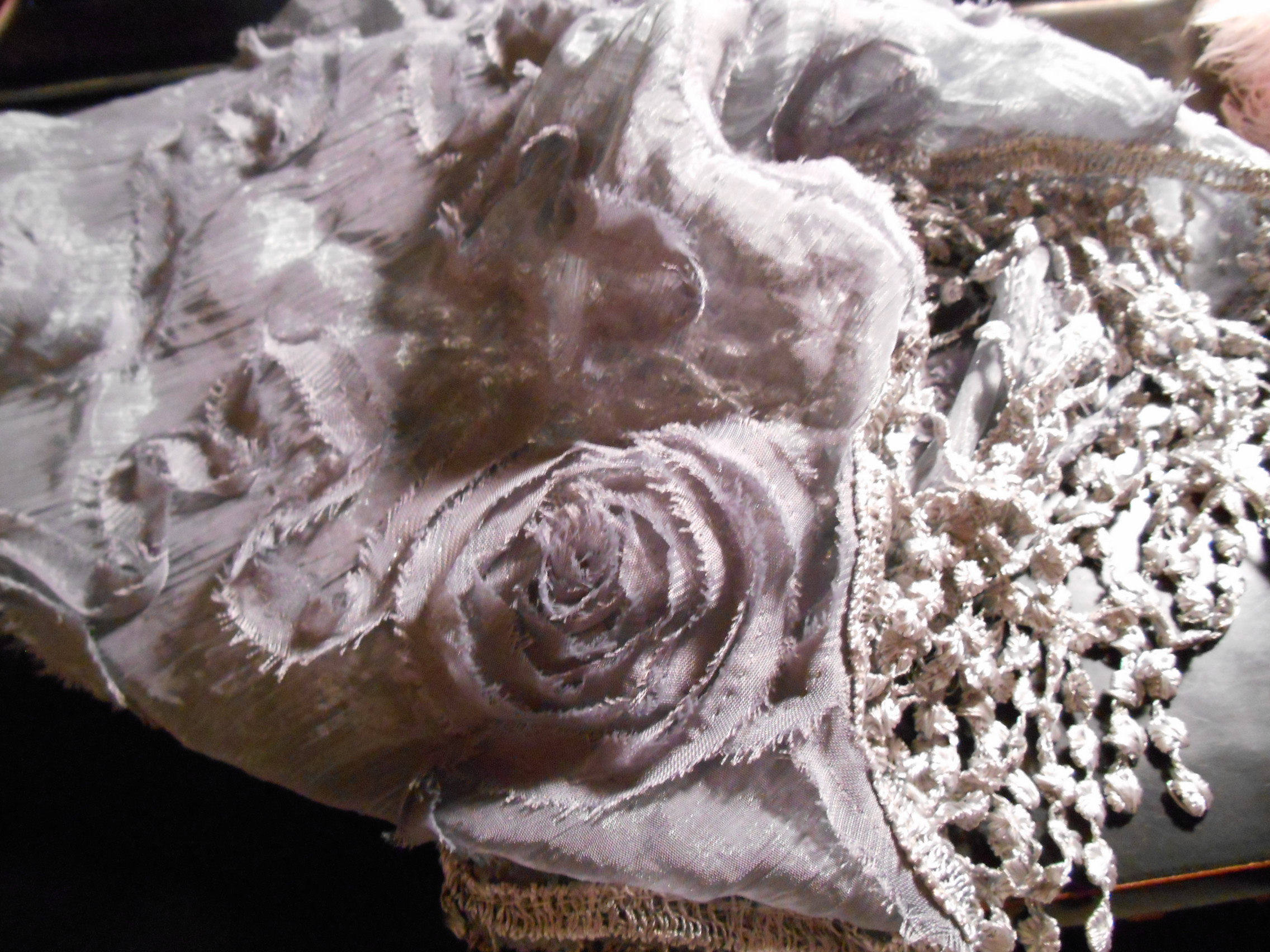This first one is a kind of velvety texture, very pretty, I paid 2.50, not sure what I will do with it yet, but it will be fun to do some beadwork on it.