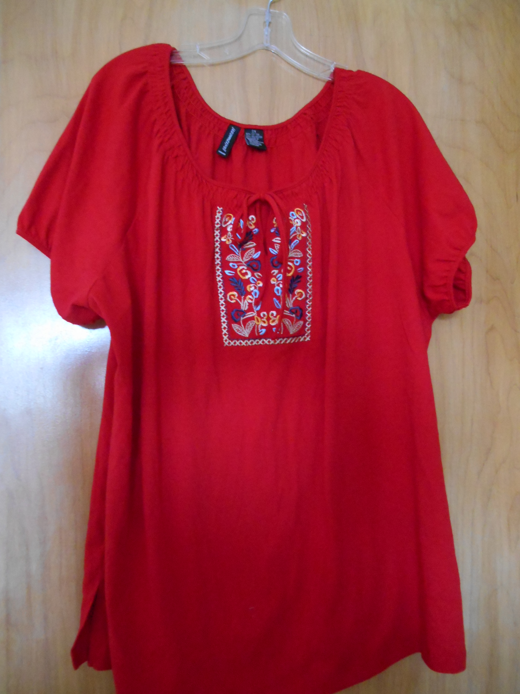 the last one is one I am keeping for myself, I love the peasant style, the rich red, not captured well by my camera and the t shirt material, I prefer that to the softer fabric of the other tops.