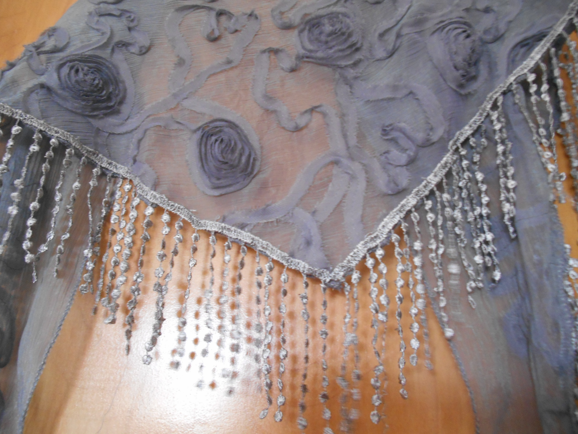 this is so pretty but some of the fringe is damaged so I may take it all off and either add another or just bead the edge and leave it at that, just not sure, but I really love the fabric even if I decide to use it for something else completely, it was a bit pricey at either three or four bucks, not sure which, but I just loved the fabric !!
