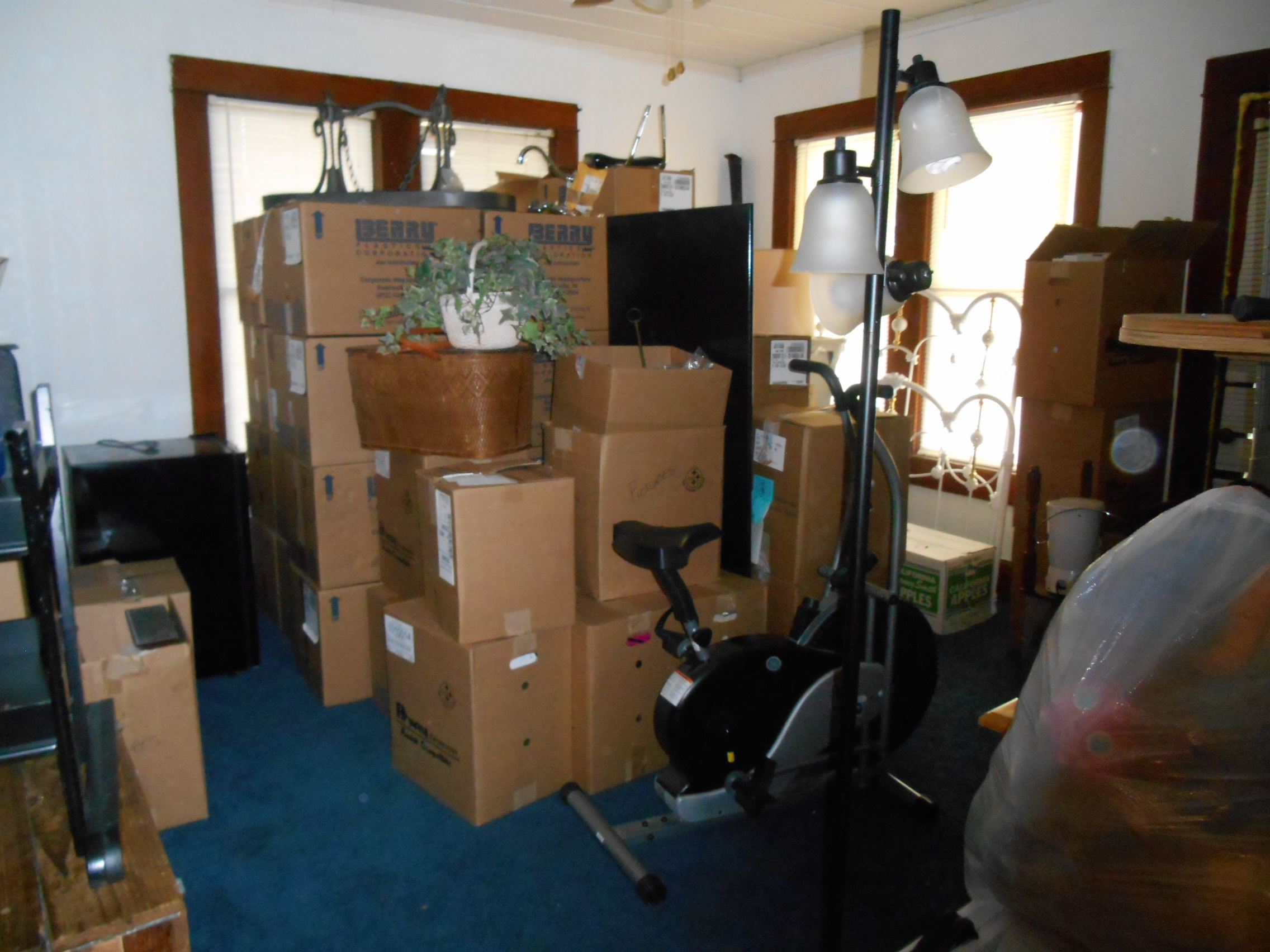 family room was empty but we are moving stuff so it filled up again with boxes and empty boxes and my poor hutch is just piled up for now, we cannot wait to decorate it will all our fun stuff, but for now, it is just temporary storage !!!