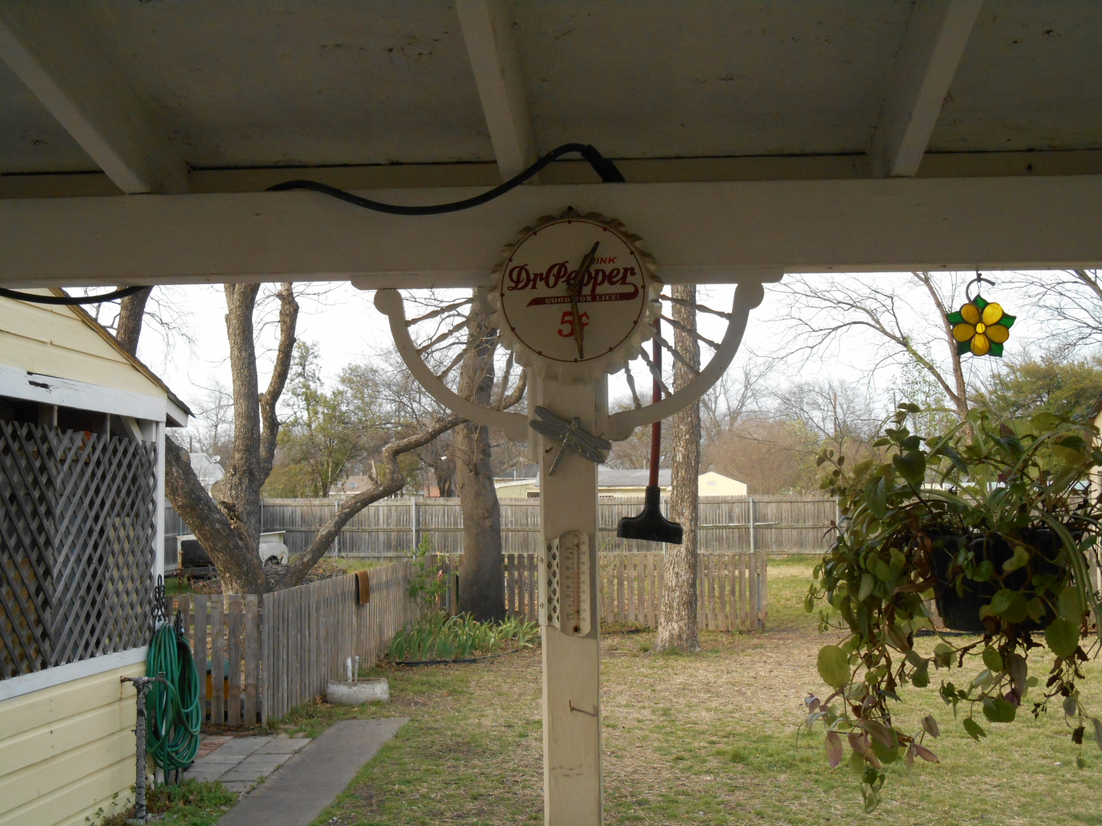 That is a plug hanging down for fans or whatever we want to plug in on the back porch, it was run over from the car port as our 90 year old house does not currently have plugs on the back porch !! The front porch has one, I have not gotten up there yet to take pictures !!