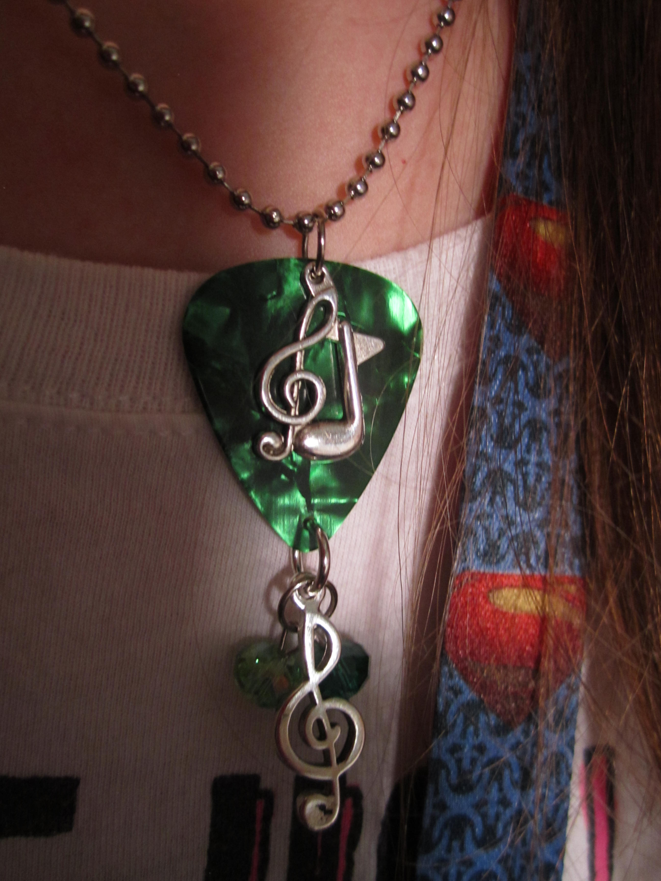 I made a fun necklace for our oldest grand daughter who is in band, school color and music notes with some glass beads, so cute !! She was nice enough to model it for me !!!
