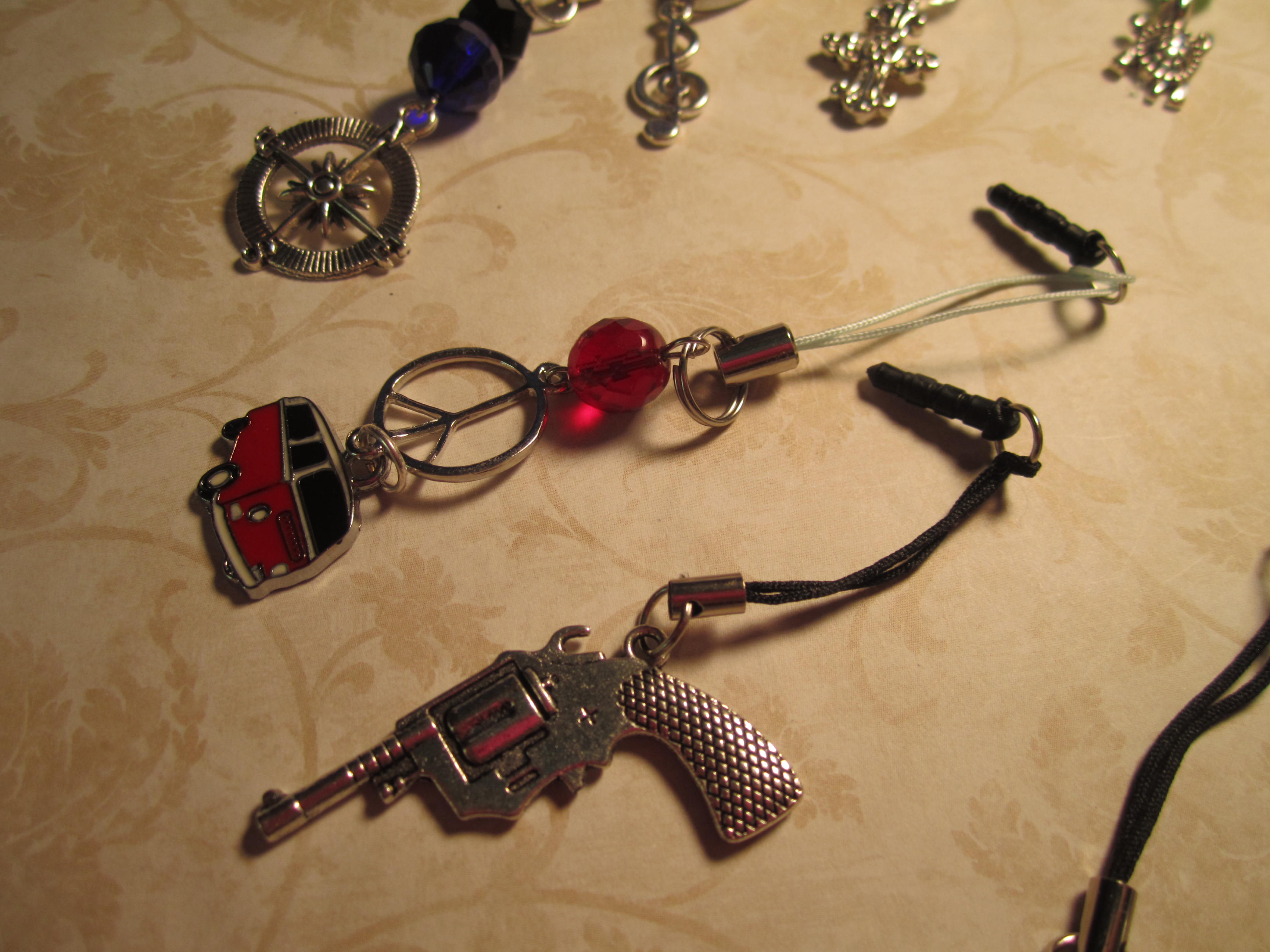 I have not been in my studio in the last few weeks, we have had some family stuff going on, nothing bad, just busy !! My studio is a guest room for a couple of weeks, so my work table is out of commission for now,  so I have not been doing a lot. I got the creative urge to make some new things today and sat down at my desk with a tv tray for extra work space, and made some fun cell phone charms that can also be used as purse charms as well !!