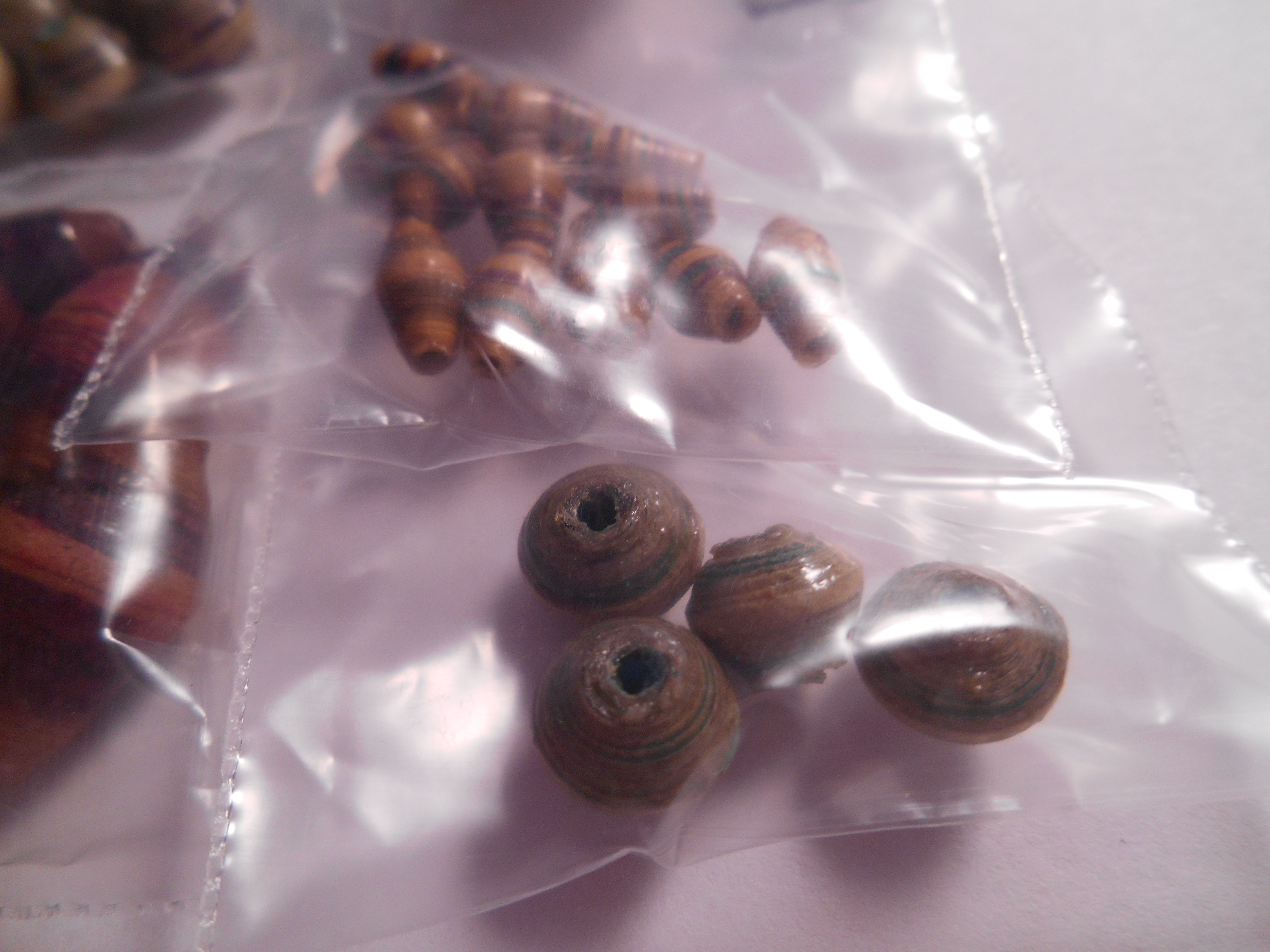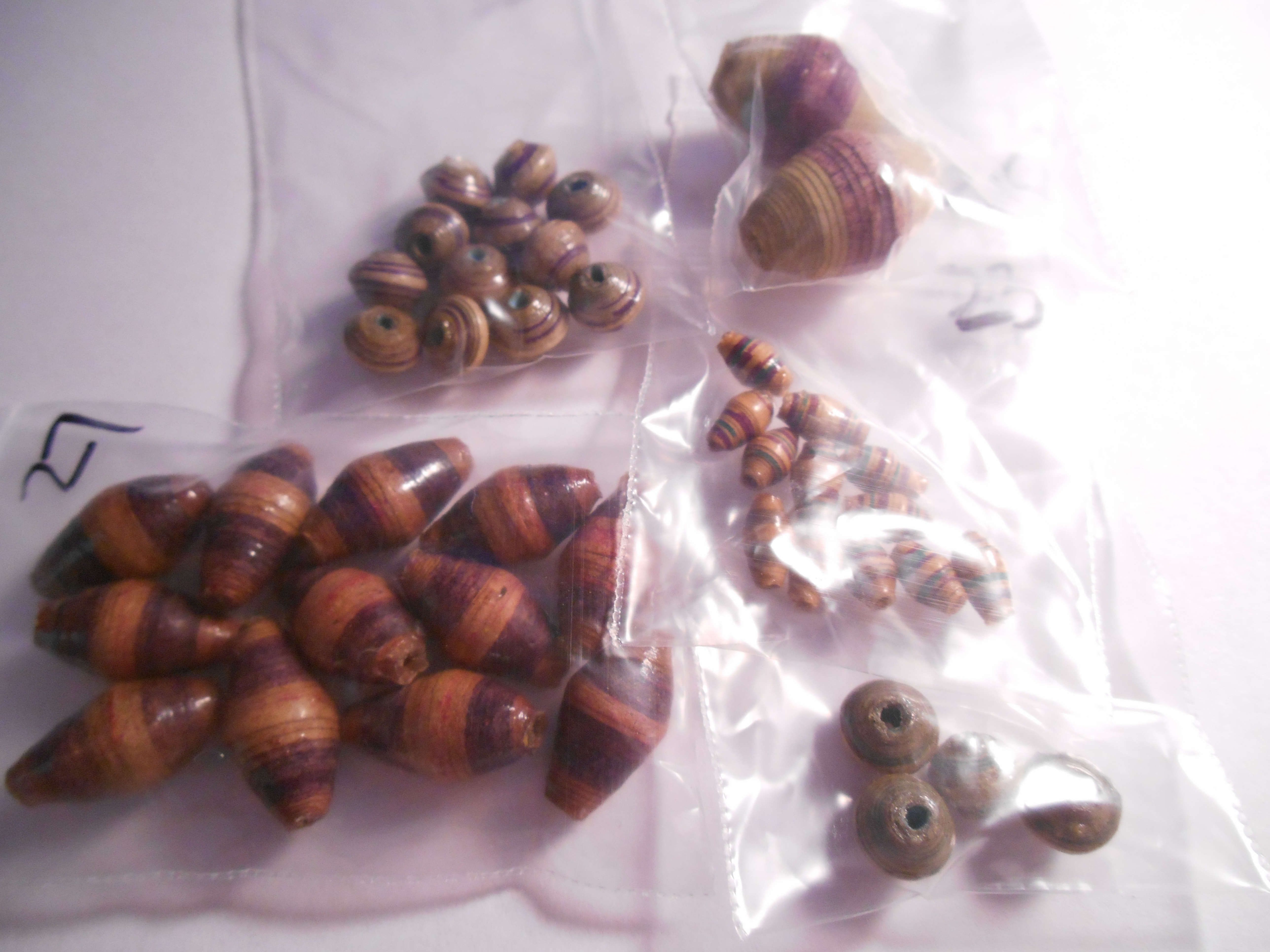 The paper beads were pretty reasonable to me, 10 cents each for two sets of 12, so 1.20 for the dozen each set, 30 cents each for the other set of 12 and 60 cents each for the two large ones. They are just stuning in person. They had other colors too, but I liked these the best. They have such a pretty glossy look to them !!