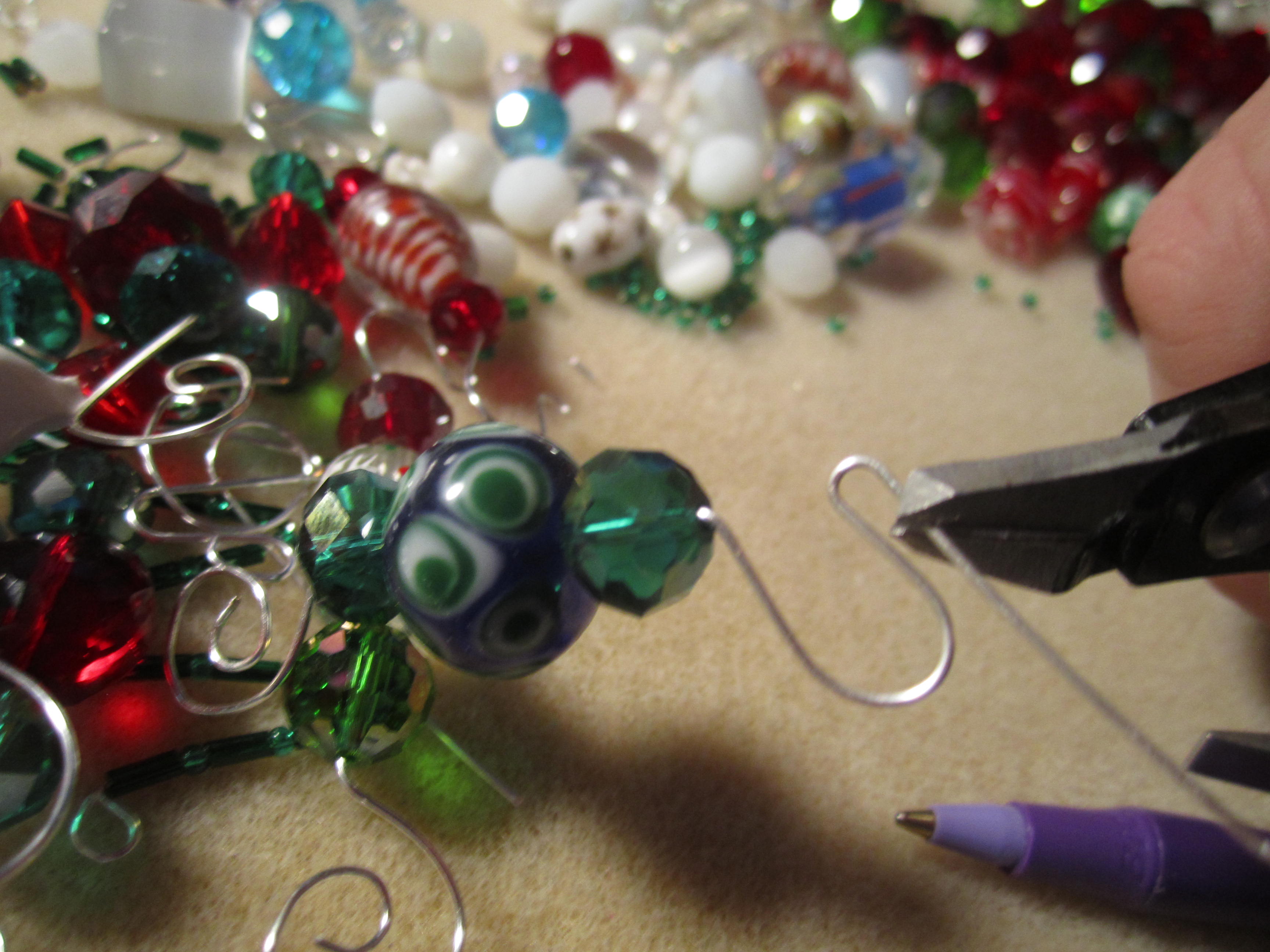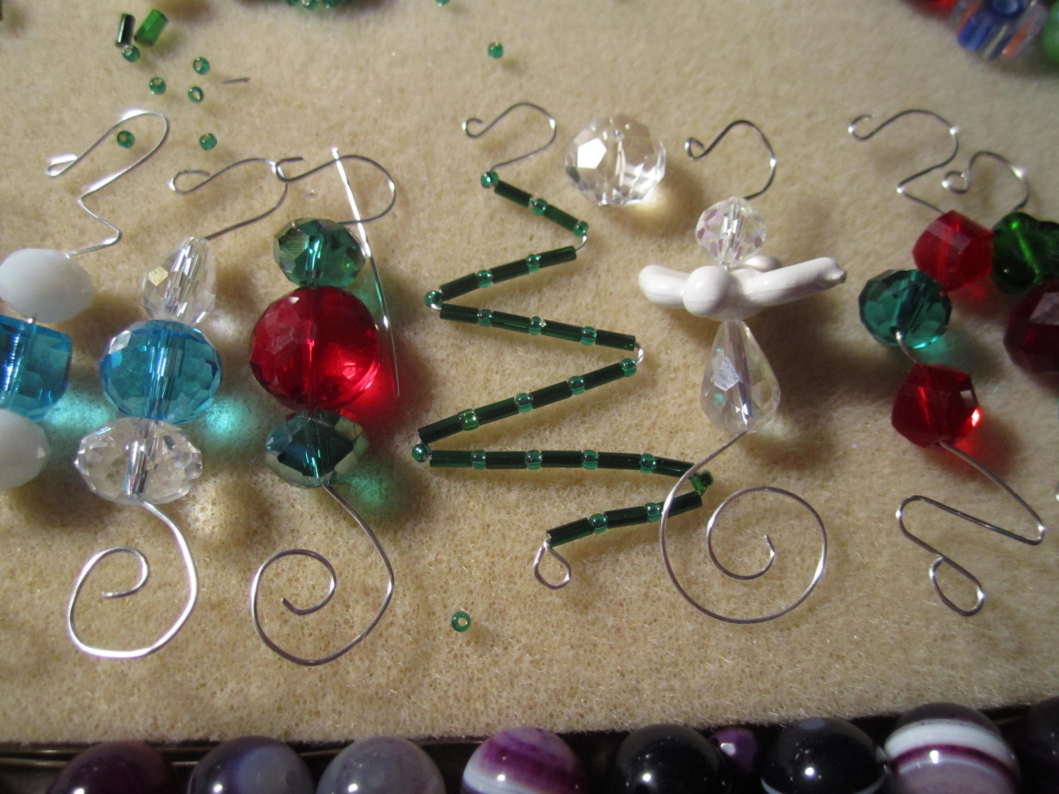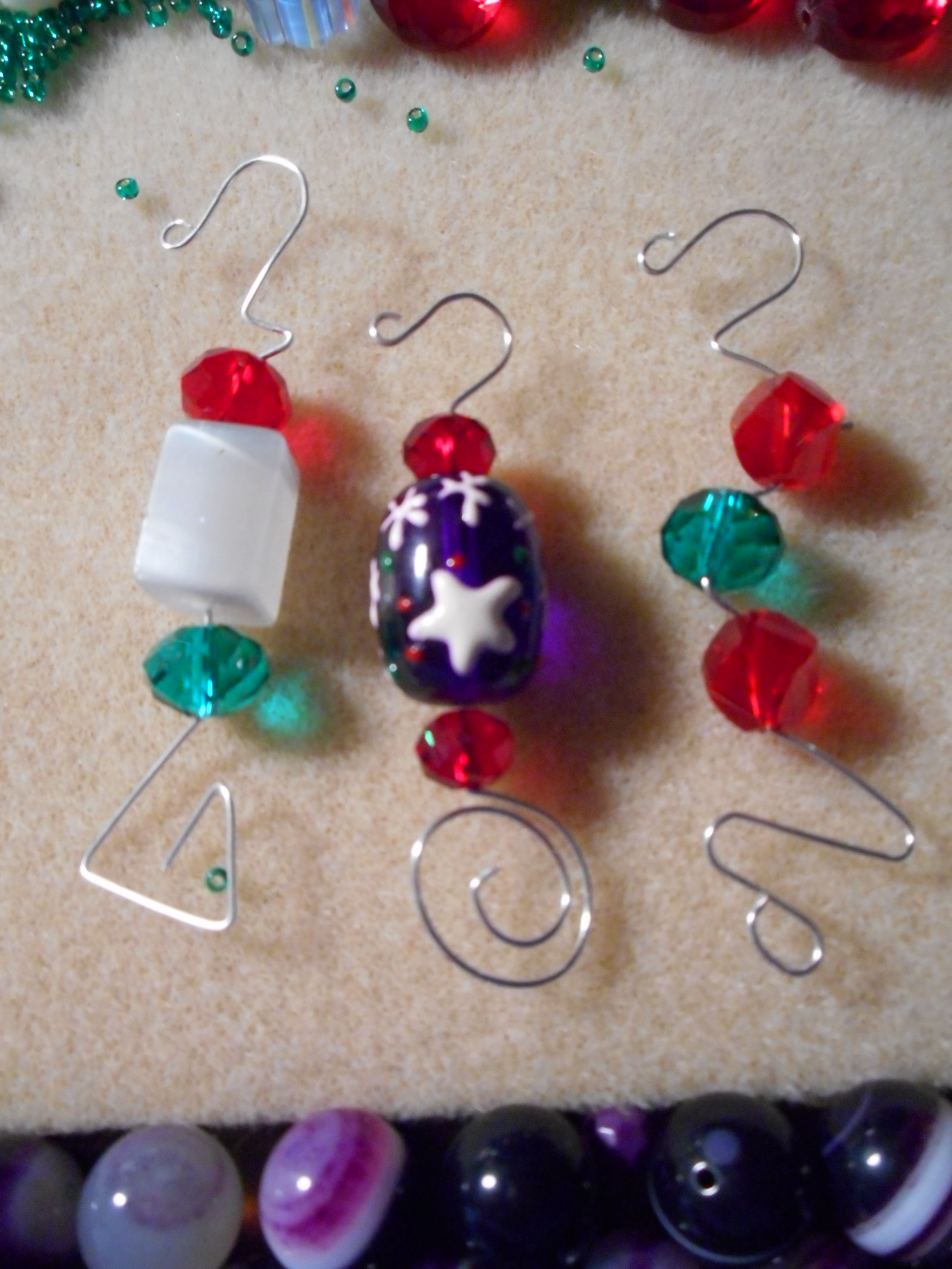 A wonderful friend told me she had seen some beaded ornament hooks. I had seen the fancy wire ones, and had even thought about adding beads, but just never did it. Well, her suggestion got me going and I have been having a blast !!