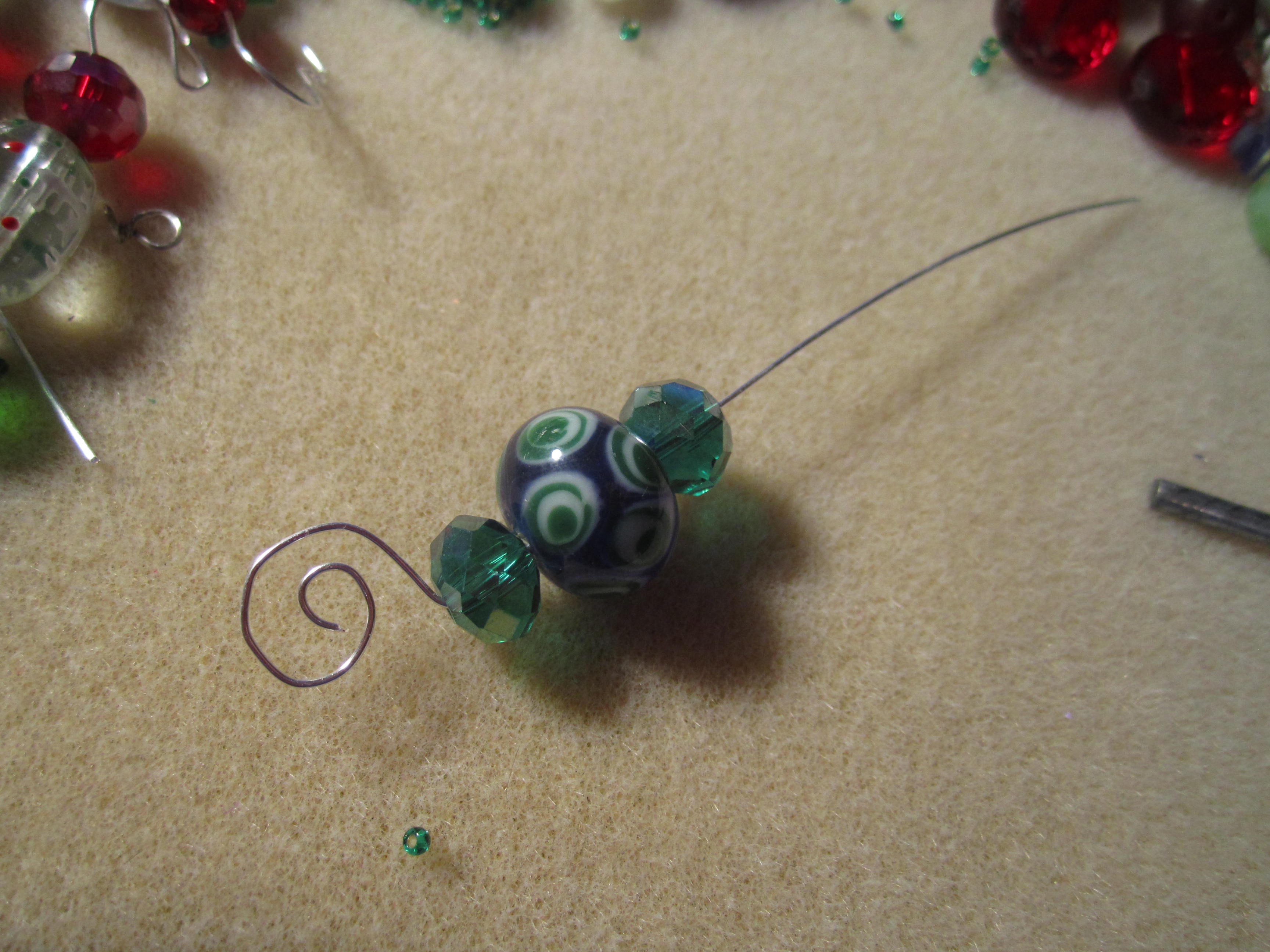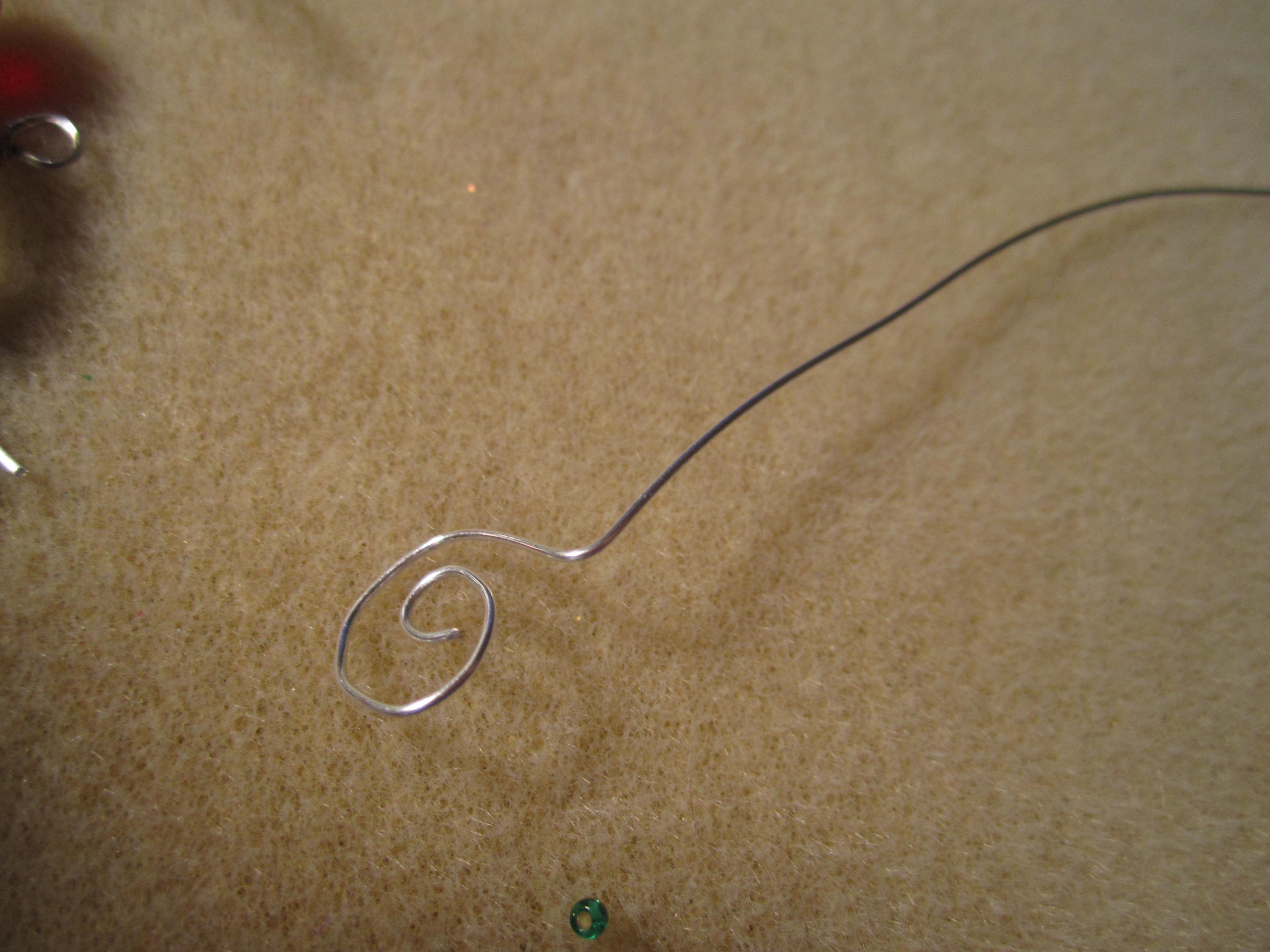 Cut your wire to size. For the ones I made above, I cut at least a five inch piece, the seed bead one was seven inches, and some only need four, but five is a good jumping off place and you can add or subtract as you go.