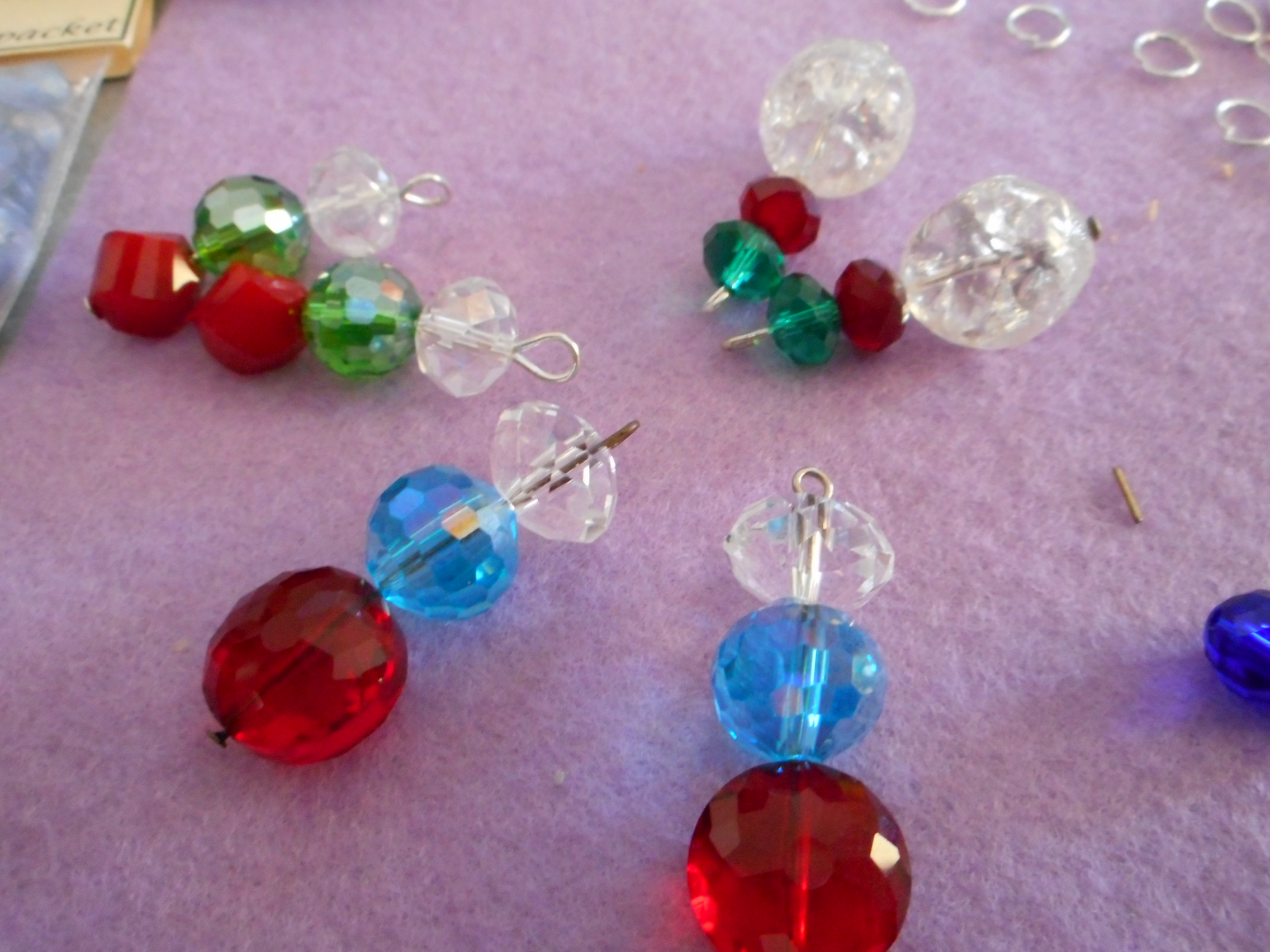 So, we are busy in the studio having fun !! I will finish up those earrings during the week, but plan to make a few more up in purple, brown, golden and tans, some orange and pink and a few more blue. I want a nice drawer of earrings for myself , along with the Christmas sets and the trees !! I have another project but I will do a seperate post on that one !!
