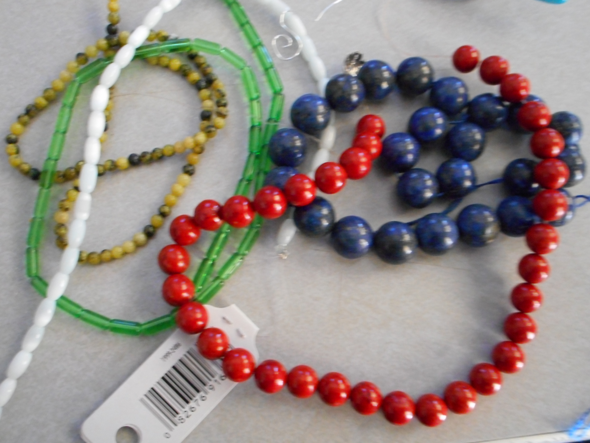 I love both these beads, the blue are 14 mm lapis lazuli and the red are sponge coral 10 mm beads. I had the pretty silver spacer beads from on old piece I took apart years ago. I am excited to wear this set !!! I just got these beads on sale from Fire Mountain Gems. They are another amazing store I shop at, and usually get a lot of stuff each time , as I buy when they have thier big sales !! Not as good of quality as the items I got from Aunties beads, those are still among the best I have found, but they are not bad at all and great prices, so I pick carefully and have been pretty thrilled with my items each time.
