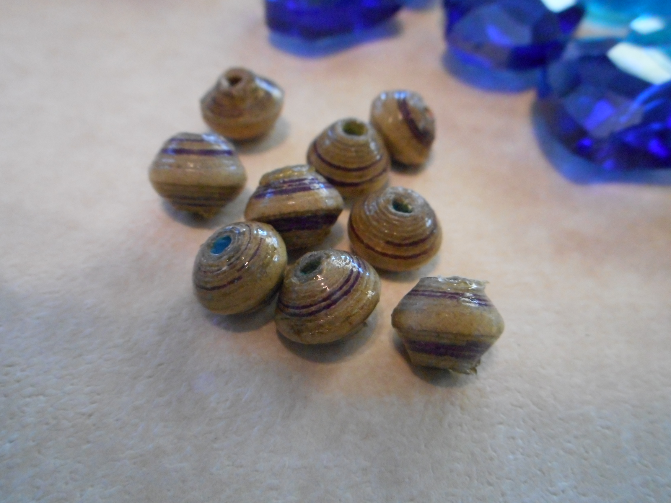 Lima always gives you a 10 percent off for your next order and I keep those coupons and use them every time. So , once you order from them that first time, you always get 10 percent off for each order afterward. I love thier seed beads, I get my pirate charms from them and some other cute charms, and African paper beads. I love those as well and have them in several sizes. These came today !!! They are a purple and tan combo and I love them !!! They appear to have a nice shiny coating on them.