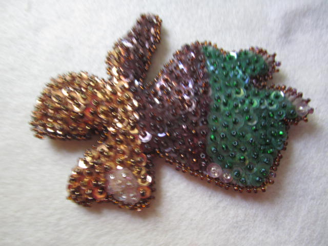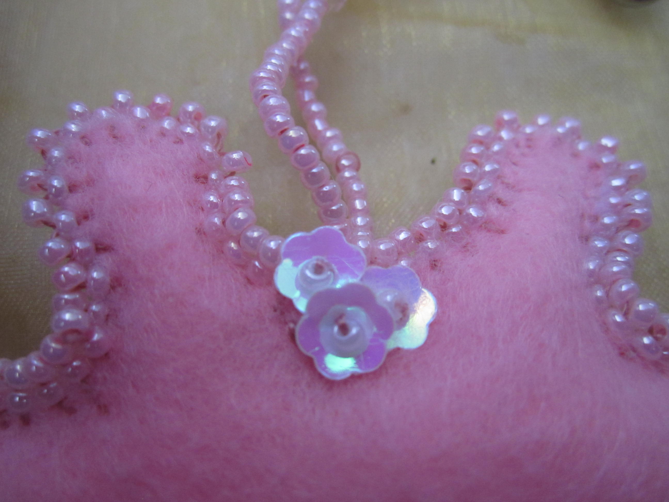 a hand beaded and sequined ornament for one of our grandaughters. I love sequins , even more than I do beads, or at least as much, and love doing this kind of work. I used all different sizes and shapes of sequins to create this piece and even did detail on the back to cover the knot
