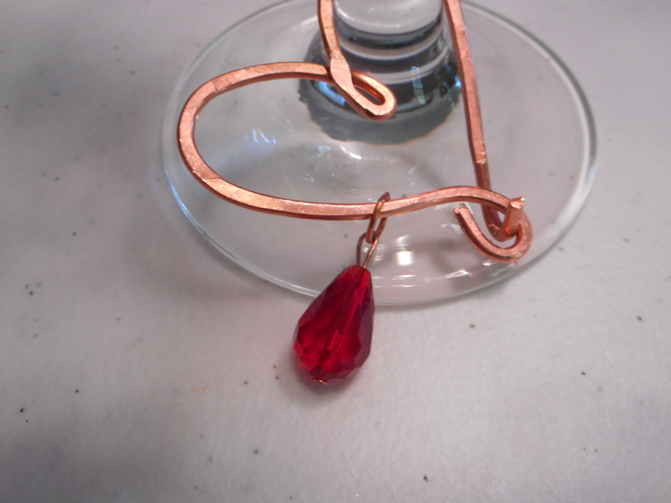I used a beading wire for the clasp, but the wine charm was made from electrical wire that I stripped the wire myself to get to the pretty solid copper wire. I hammered it to make this pretty wine charm !!
