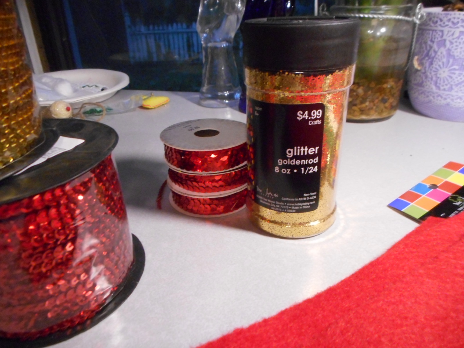 I think I am going to grab my husband and go to Hobby Lobby to return those flat sequin ribbons, and see what sparkly fun thing I can add to my pile.