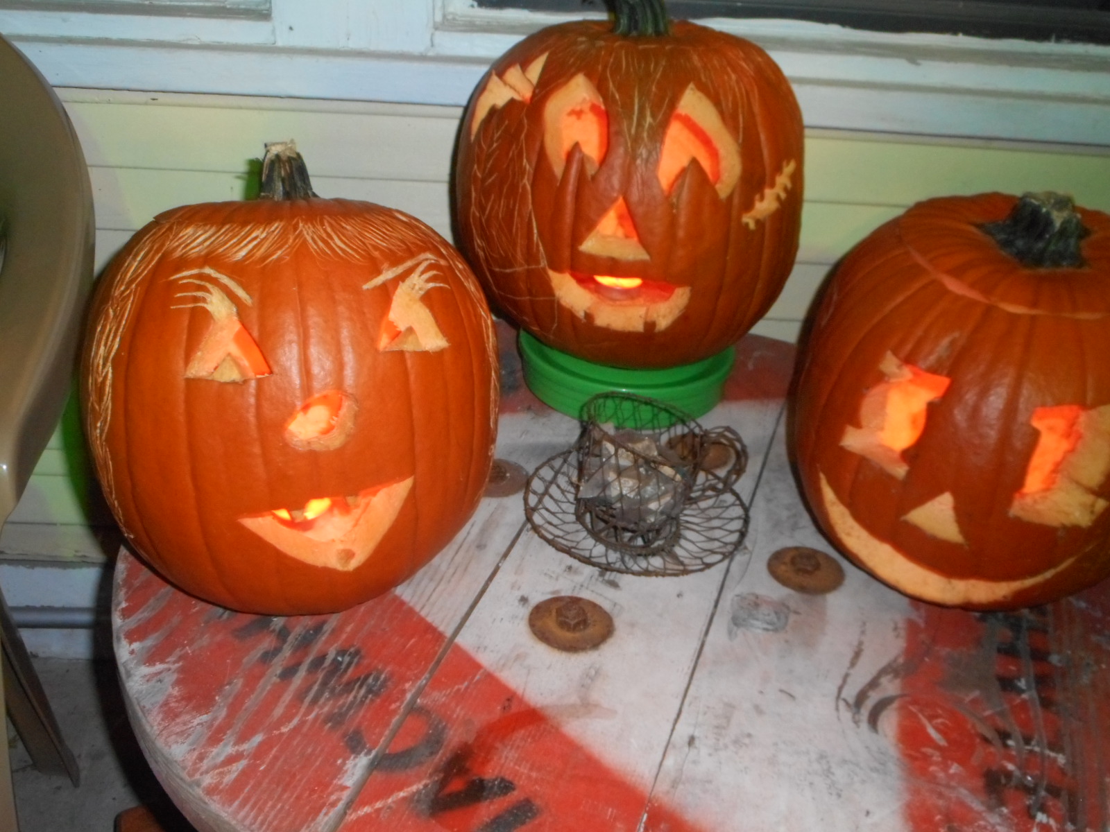 One last halloween picture, some of the pumkins that our daughter, her husband and the three girls did !! The others have kids pictures and I do not put the kids pictures on my blog.