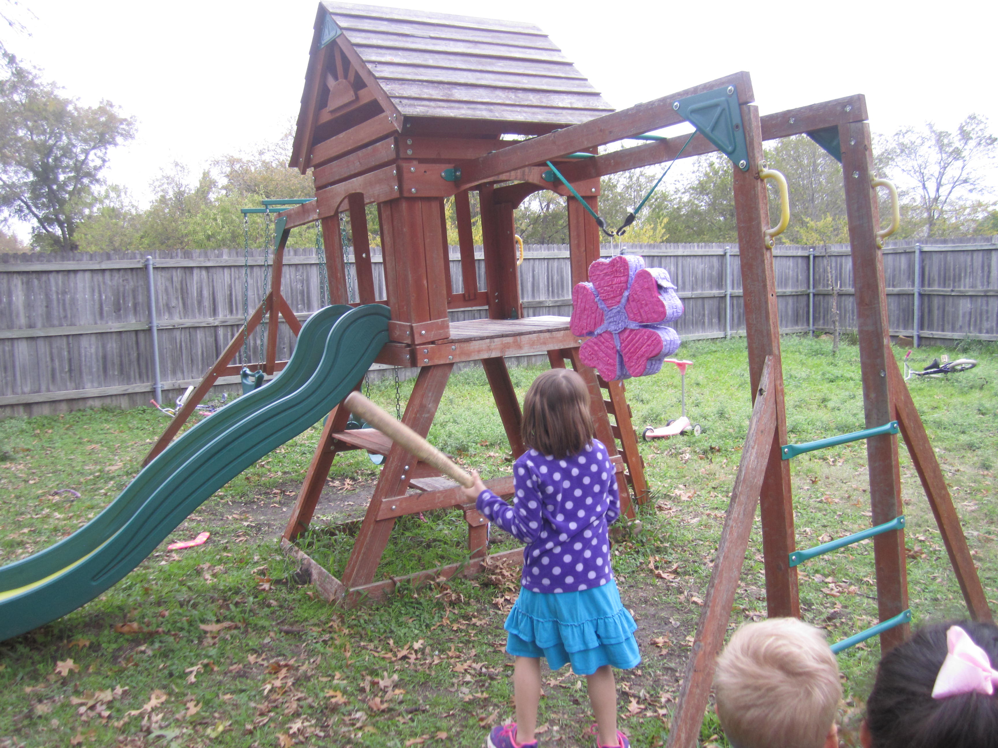 It was a fun day. birthday girl marching to the pinata .  All the kids got a wack at it !!