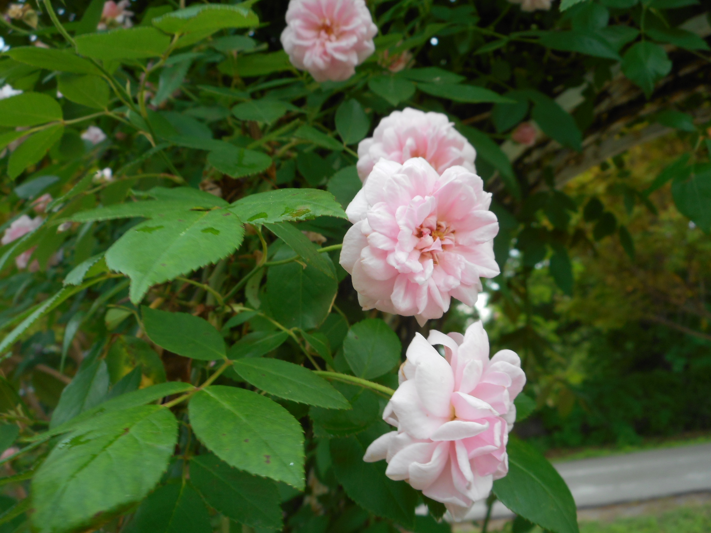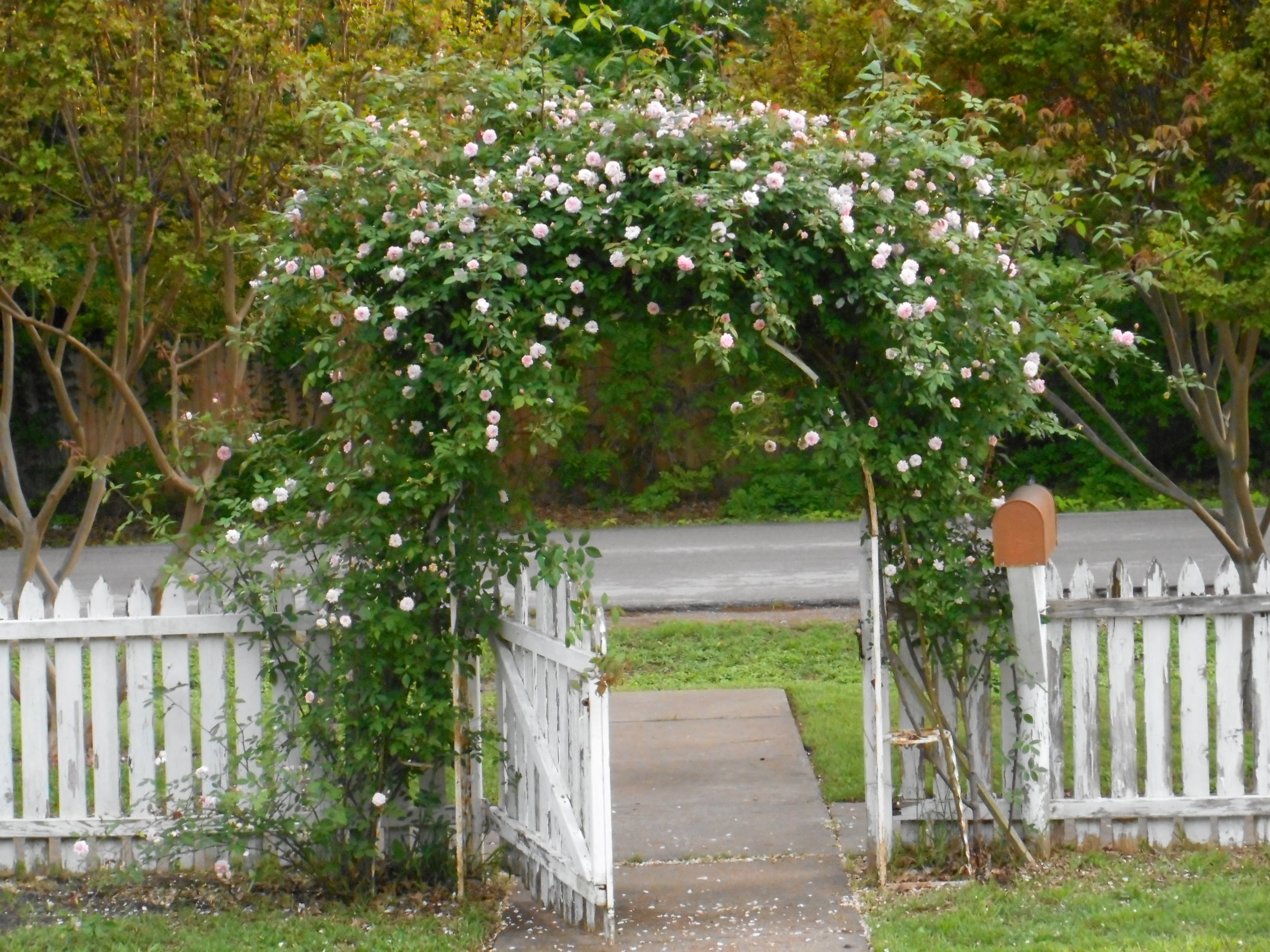 our roses bloomed, love the tiny pink roses over our gate , and they smell heavenly !!!