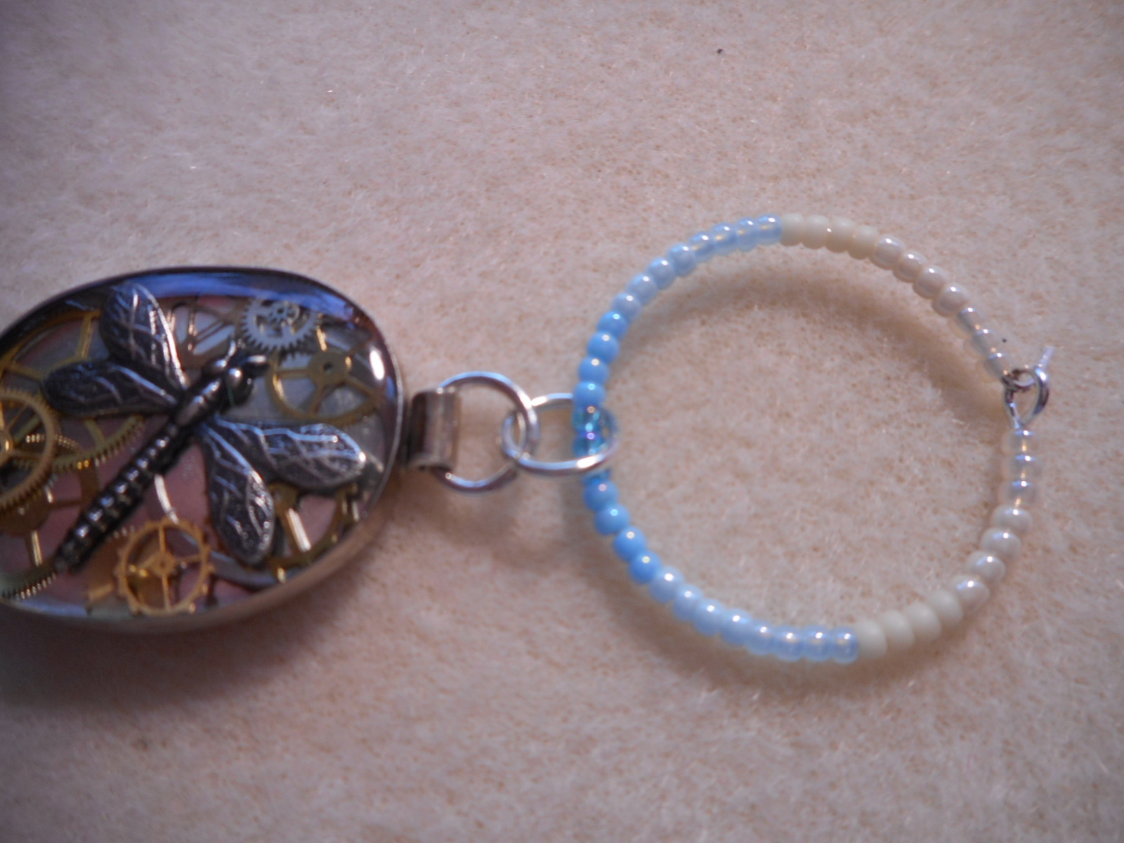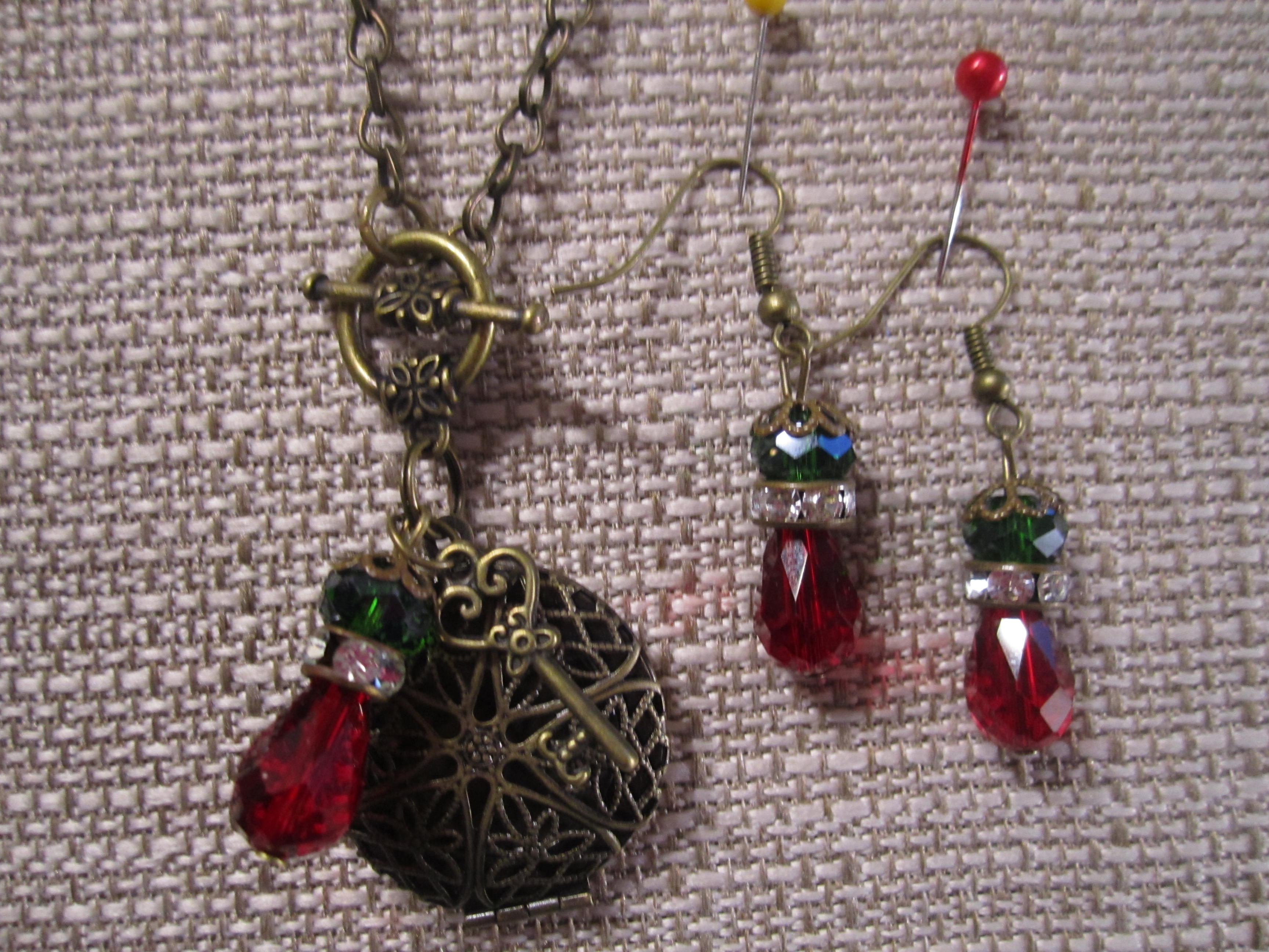 I also bought more fun items to work with , lockets, watches. I also did some steam punk jewelry and worked on my wire skills on this necklace, wire wrapping in a chain style red glass beads and making my own copper clasp.