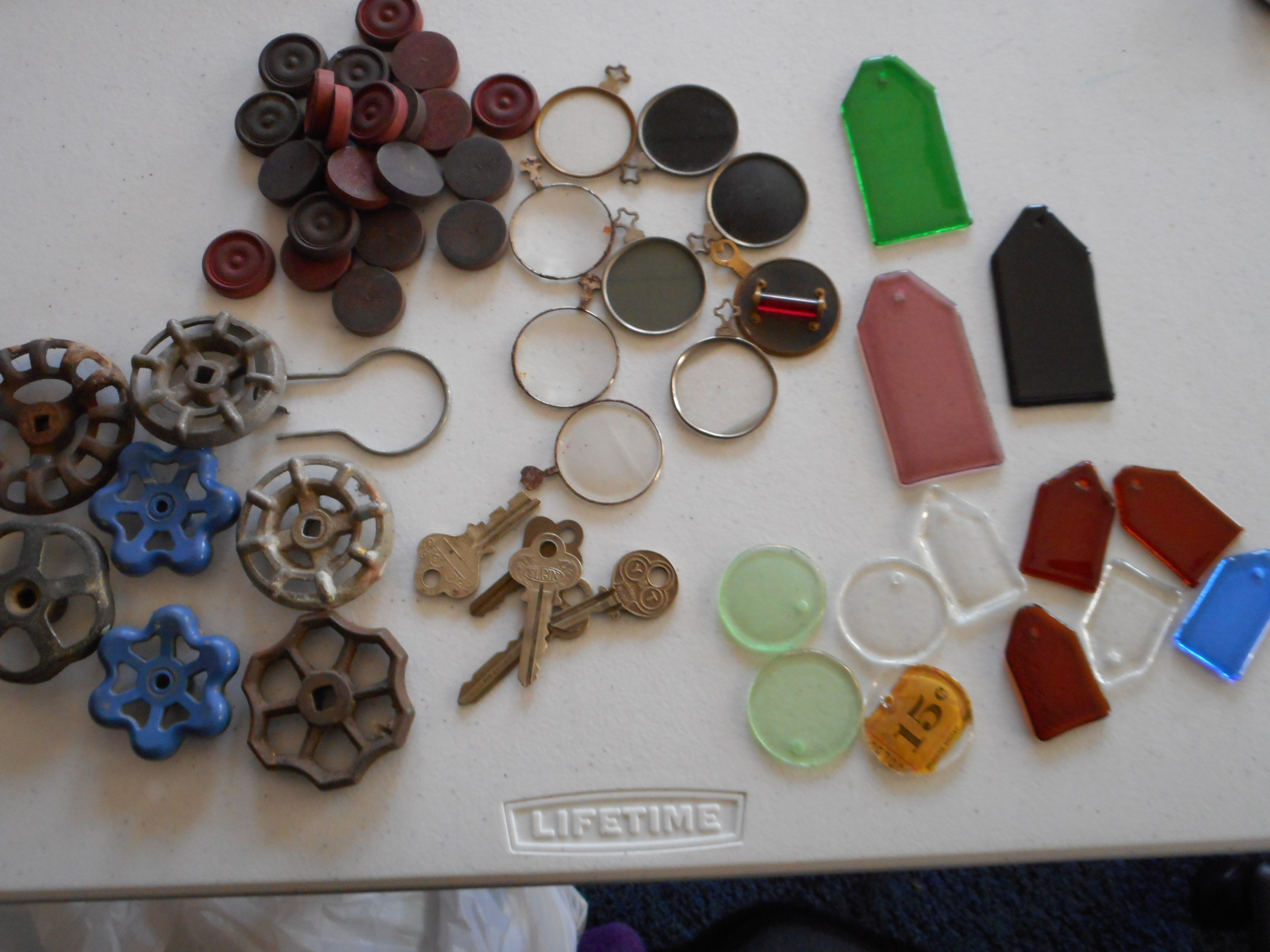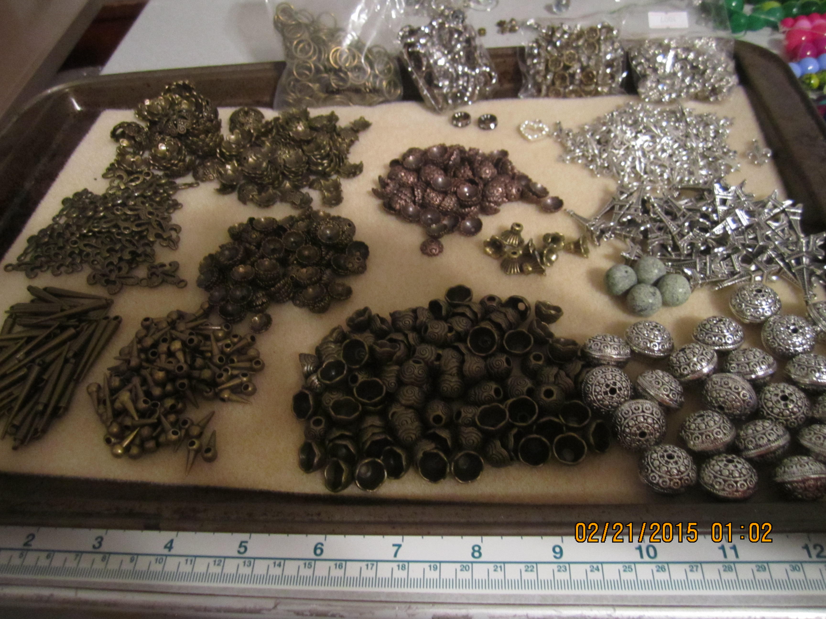 My husband and I attended the Bead Market up in the Dallas area. I also ordered a lot of really interesting things to work with on Etsy !!! Beads, charms, findings, many not shown here along with really unique and interesting items like vintage keys, old lenses , fused glass tags, old game pieces and much more. Lots of fun things , lots of old watches and parts as well !!!